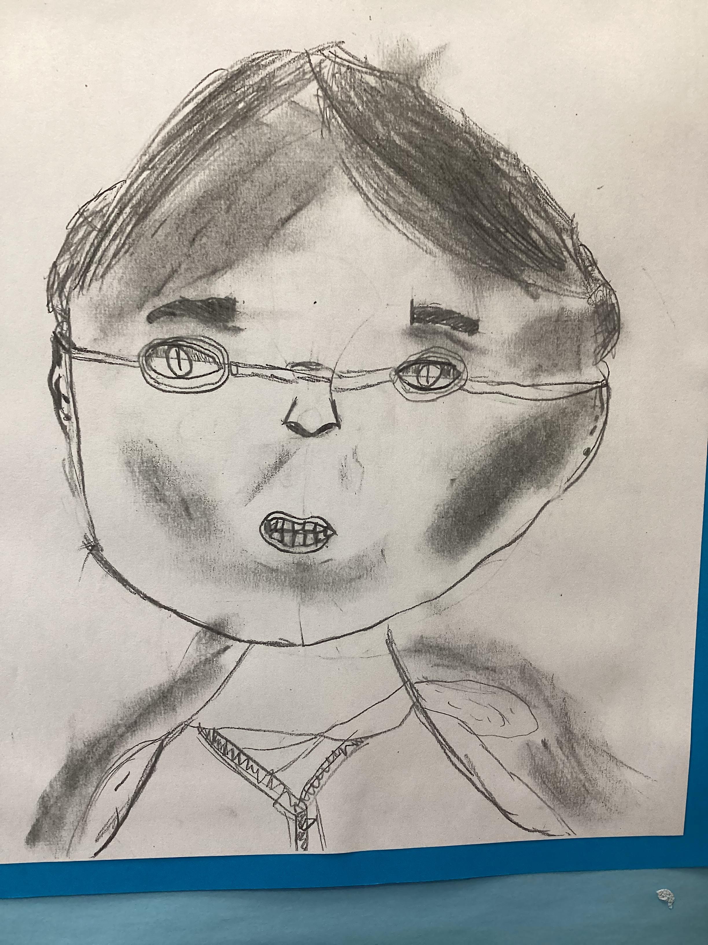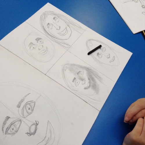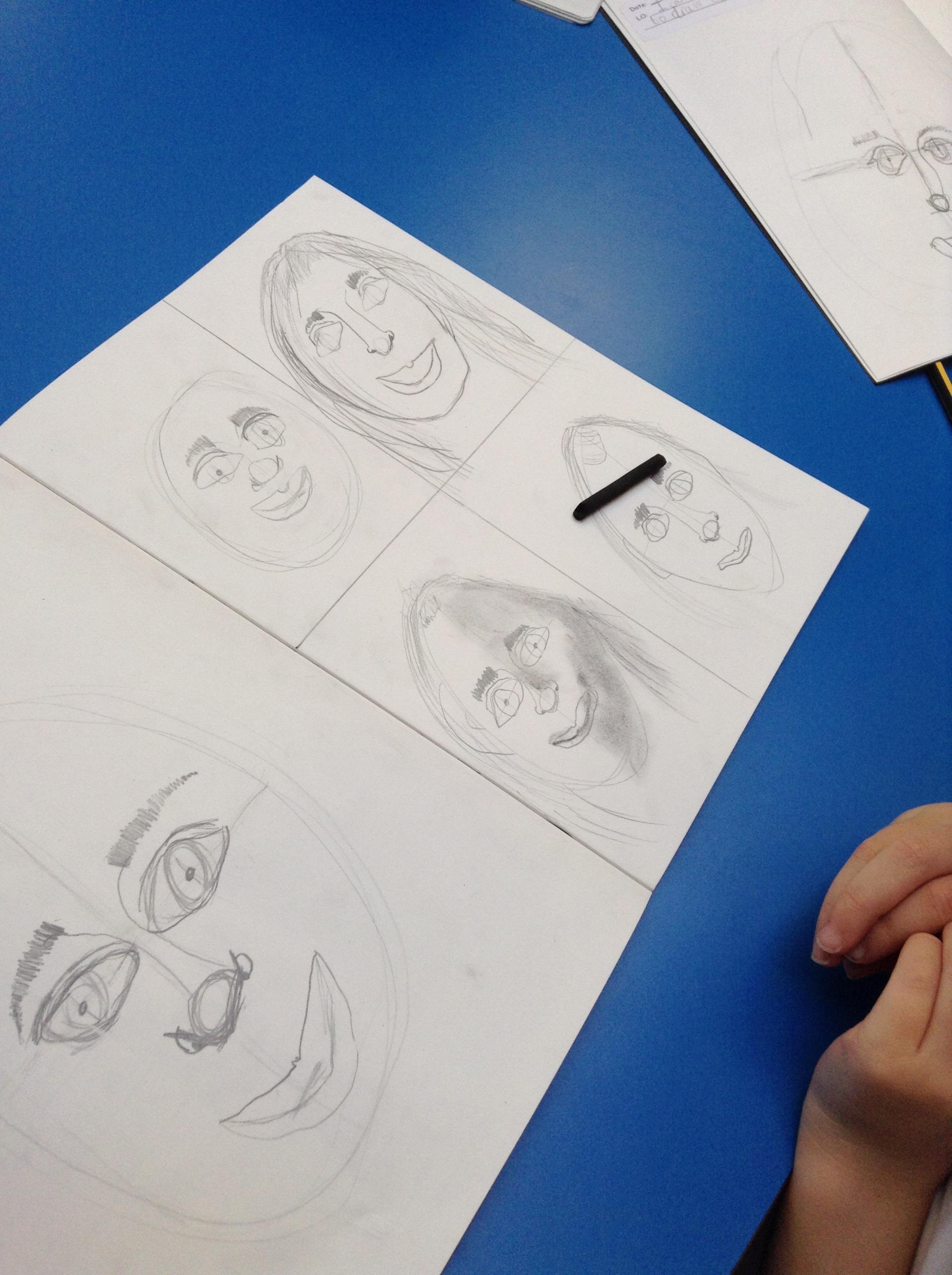 We learned how to use proportions correctly when drawing a human face. We used different pencil grades and charcoal to smudge and shade to show light and shadows.