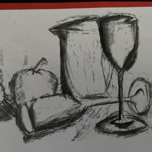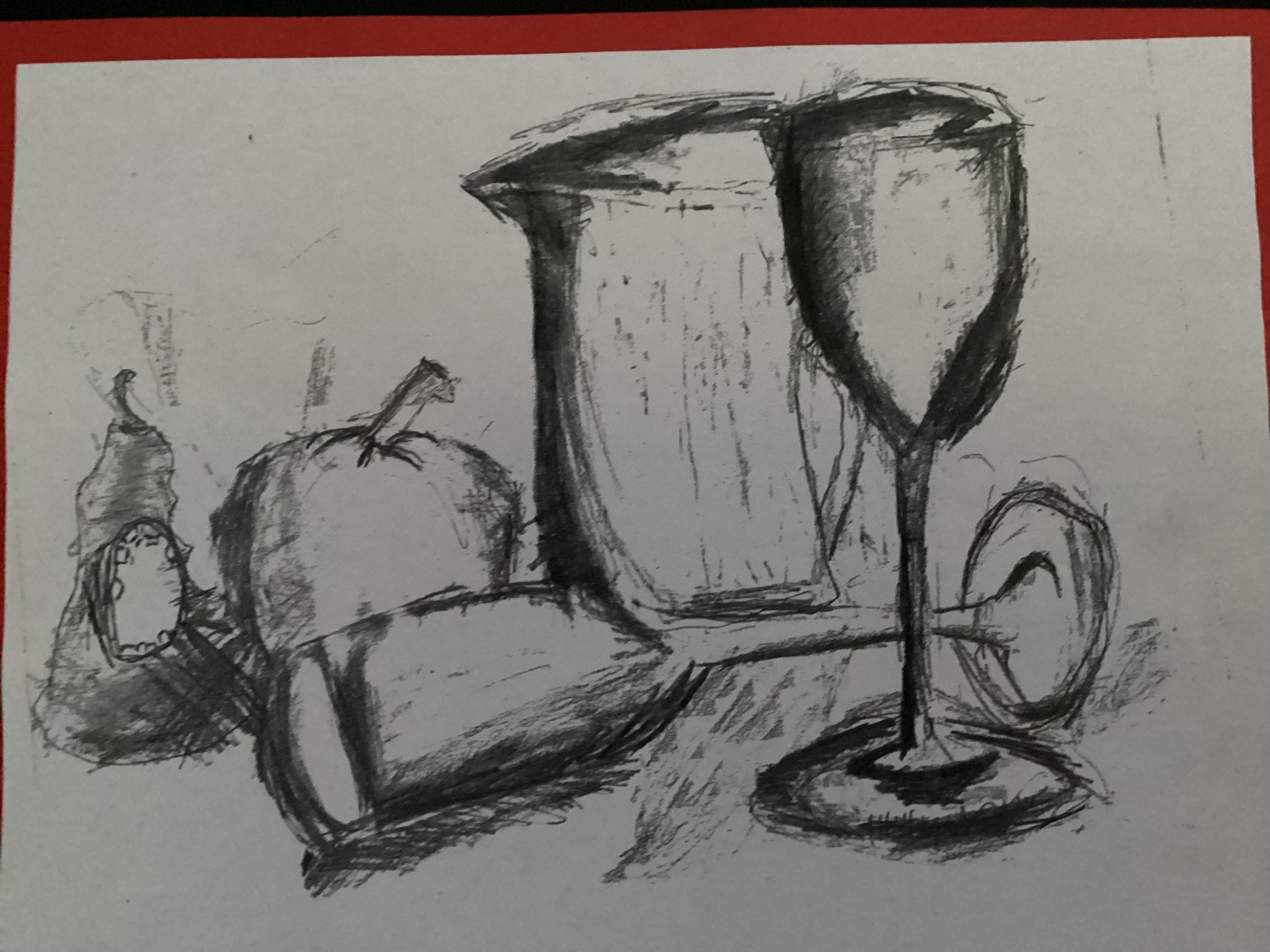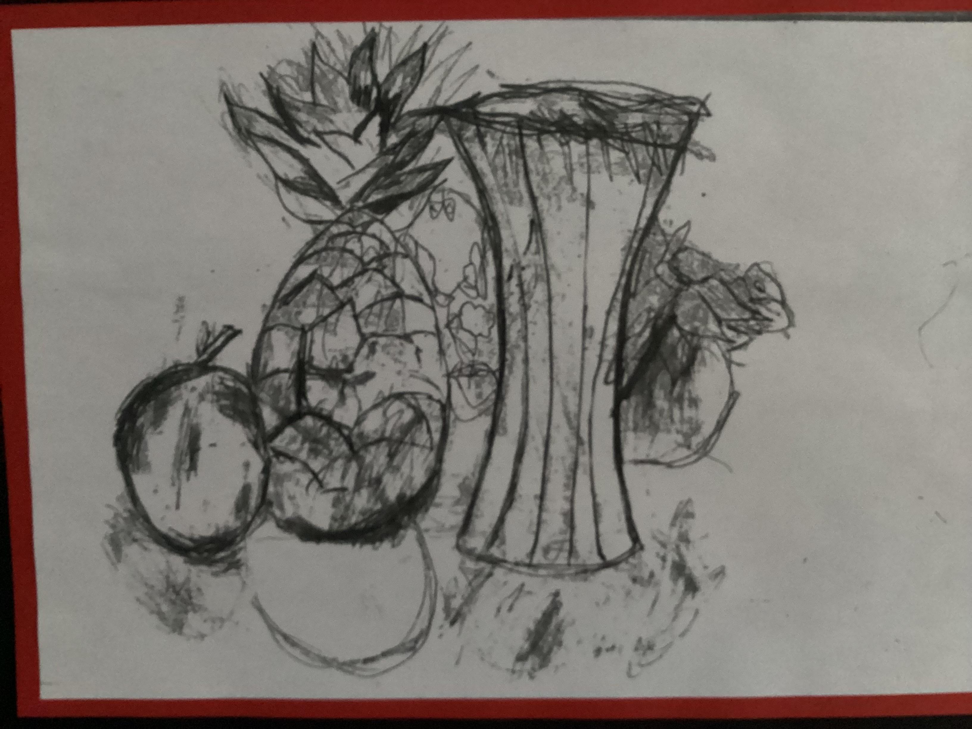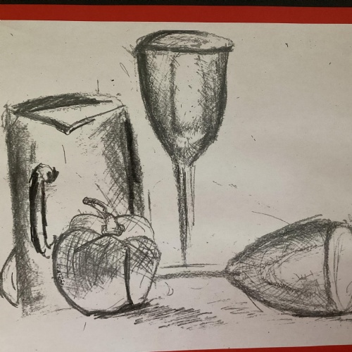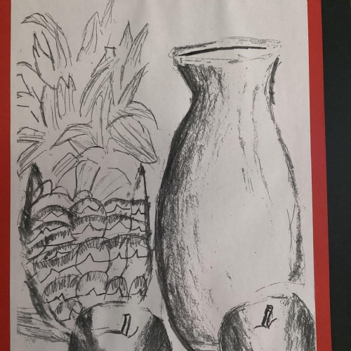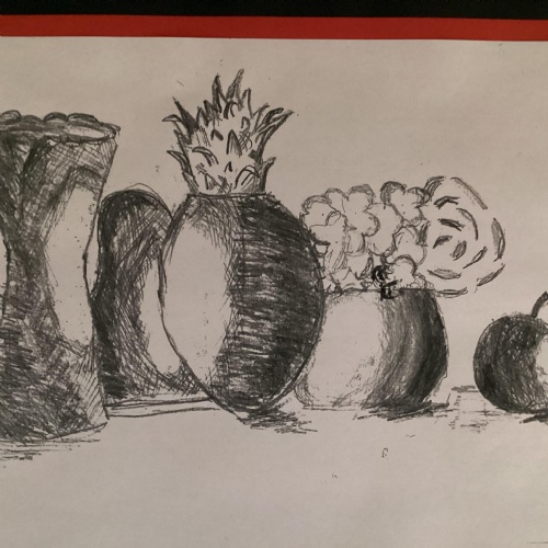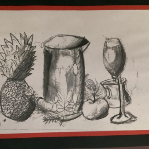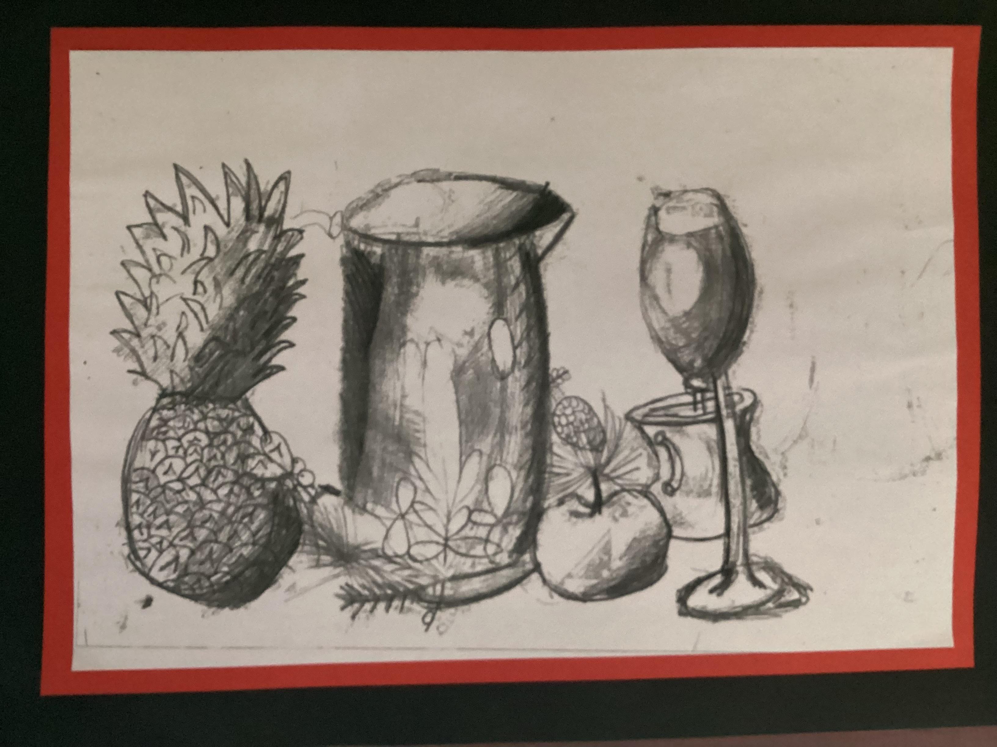 We learned about still life arrangements and practised drawing outlines of objects with the correct proportions and in the correct positions. We used crosshatching as a technique to shade our objects.