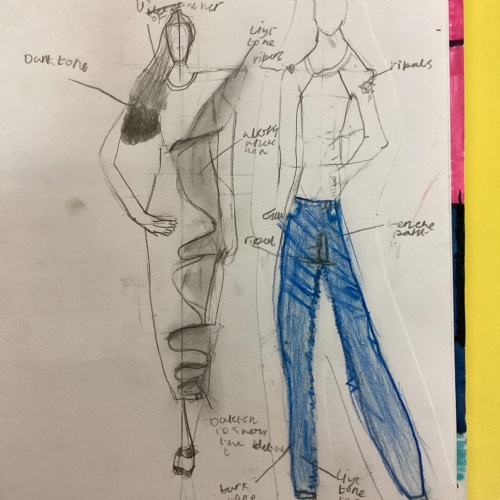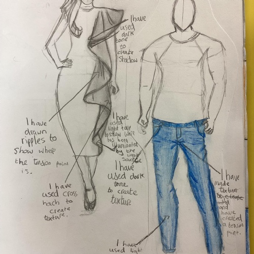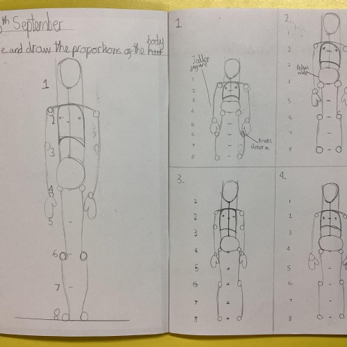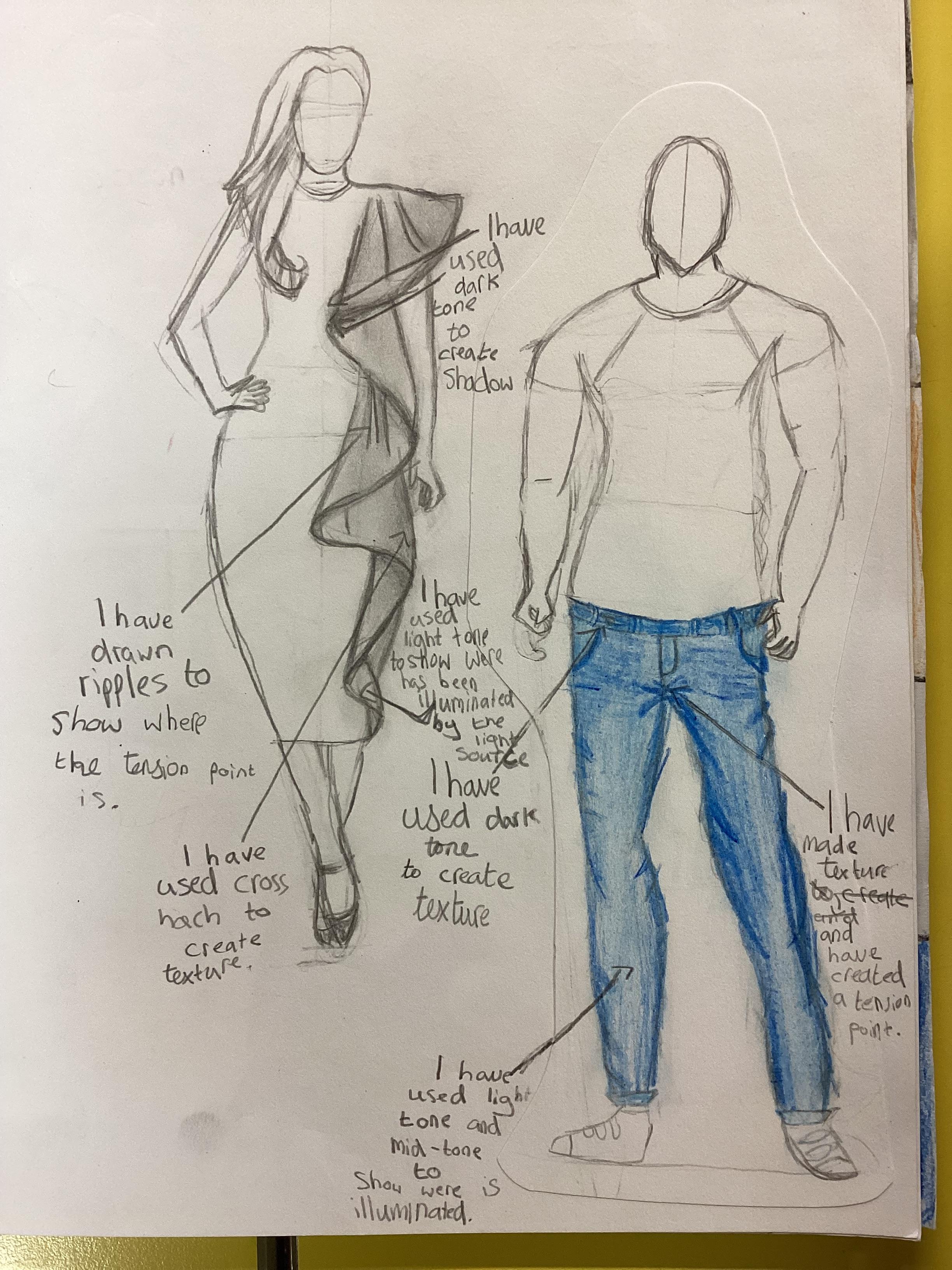 We learned how to draw the human body to the correct proportions. We also practised our disciplinary knowledge of shading and tone to create realistic textures.