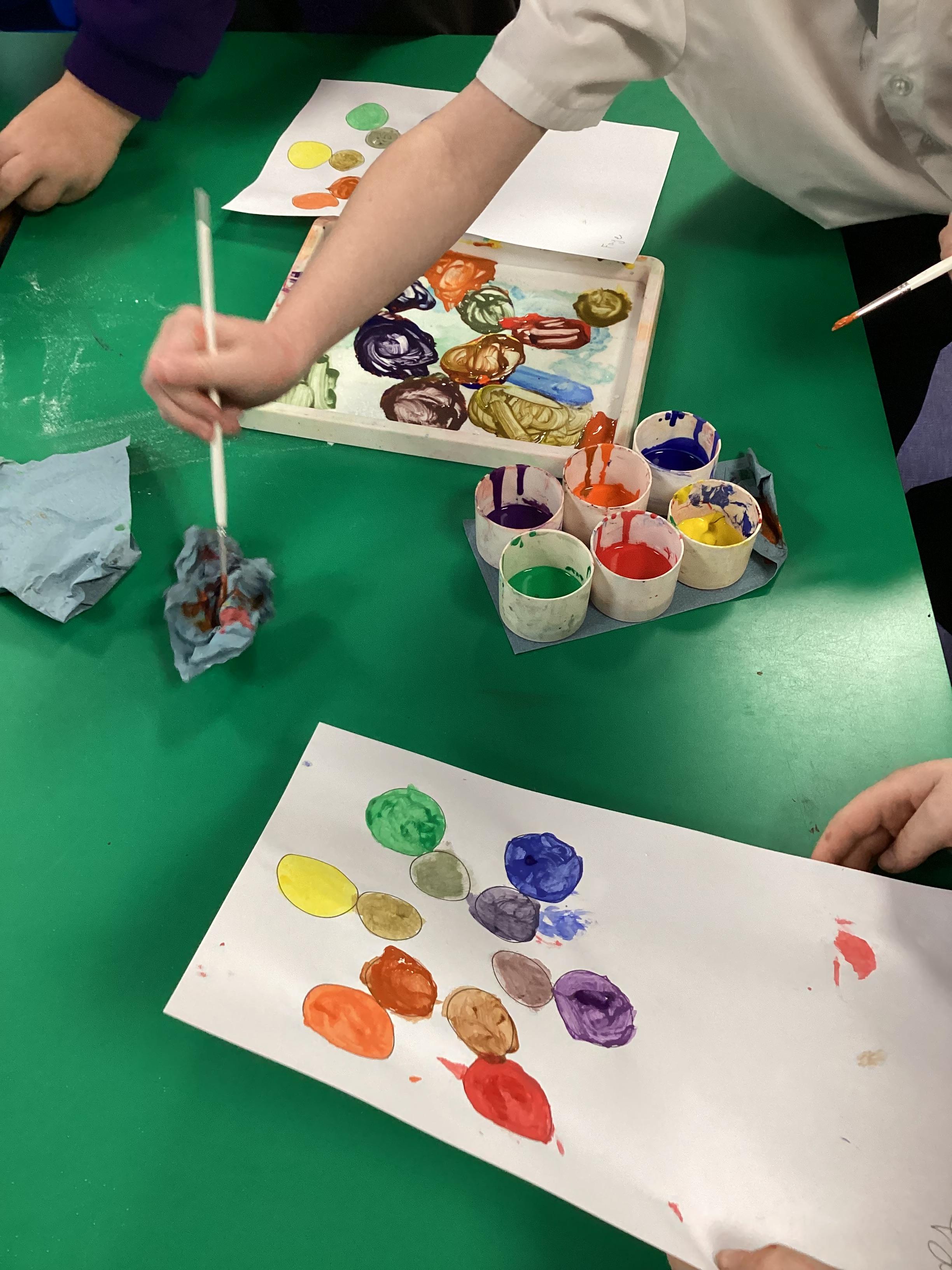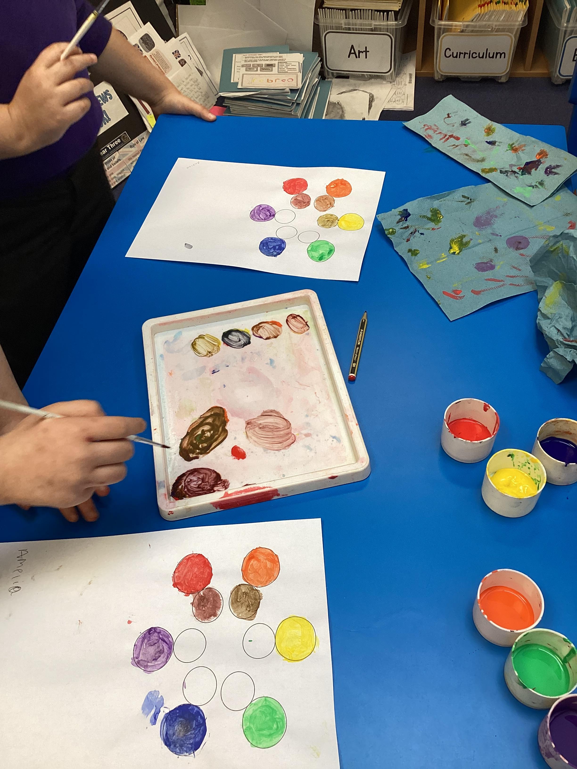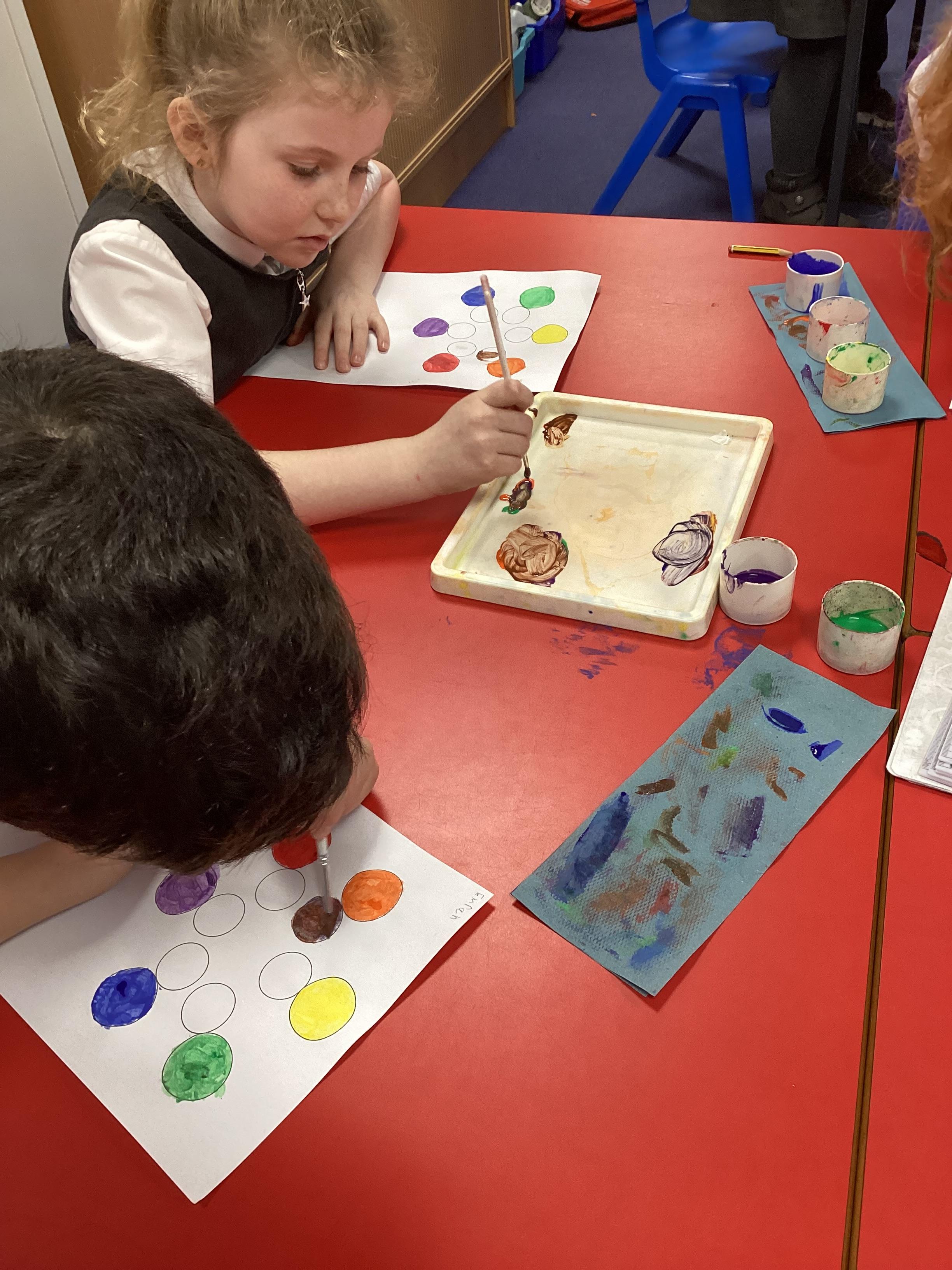 In Reception, we begin teaching our children art through developing their disciplinary and substantive knowledge as described in the EYFS curriculum area of ‘Expressive Arts and Design’  by providing opportunities for children to explore and develop mark making and colour mixing with a range of media and through the modelling of drawing and painting.