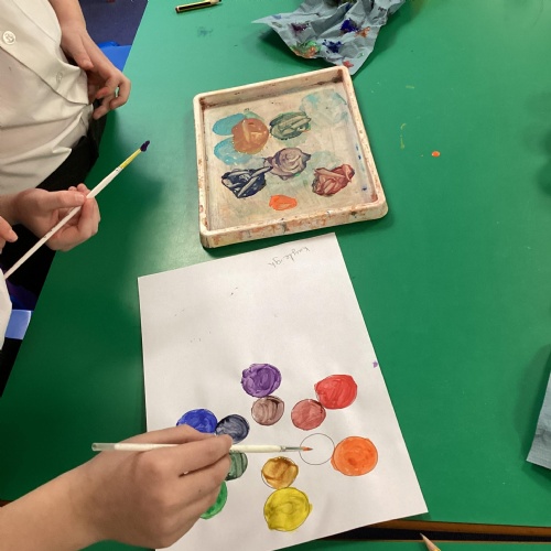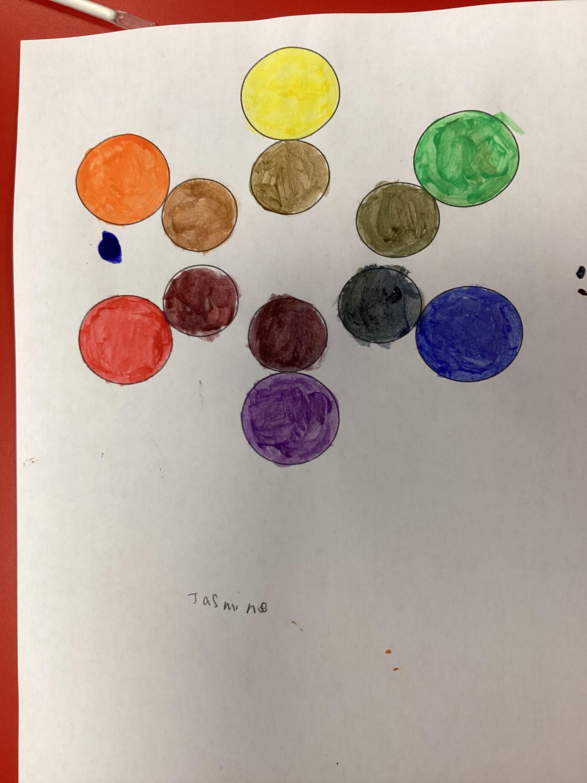 We learned how to use primary and secondary colours to mis earthy colours. We practiced mixing Yellow Ochre, Burnt Sienna, Raw Sienna, Burnt Umber, Raw Umber and Van Dyke Brown.