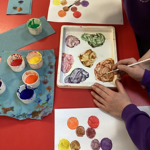 In Reception, we begin teaching our children art through developing their disciplinary and substantive knowledge as described in the EYFS curriculum area of ‘Expressive Arts and Design’ by providing opportunities for children to explore and develop mark making and colour mixing with a range of media and through the modelling of drawing and painting.