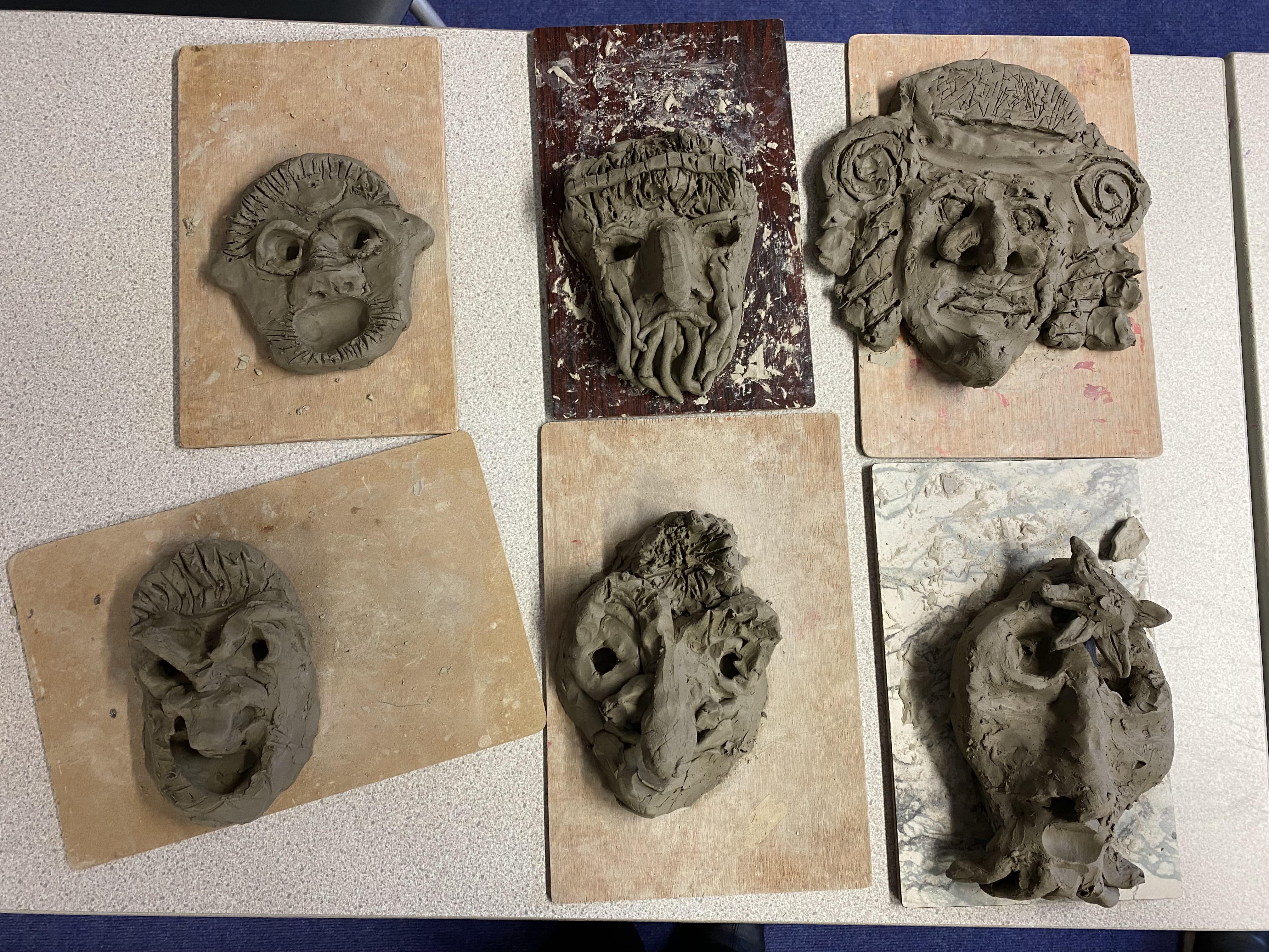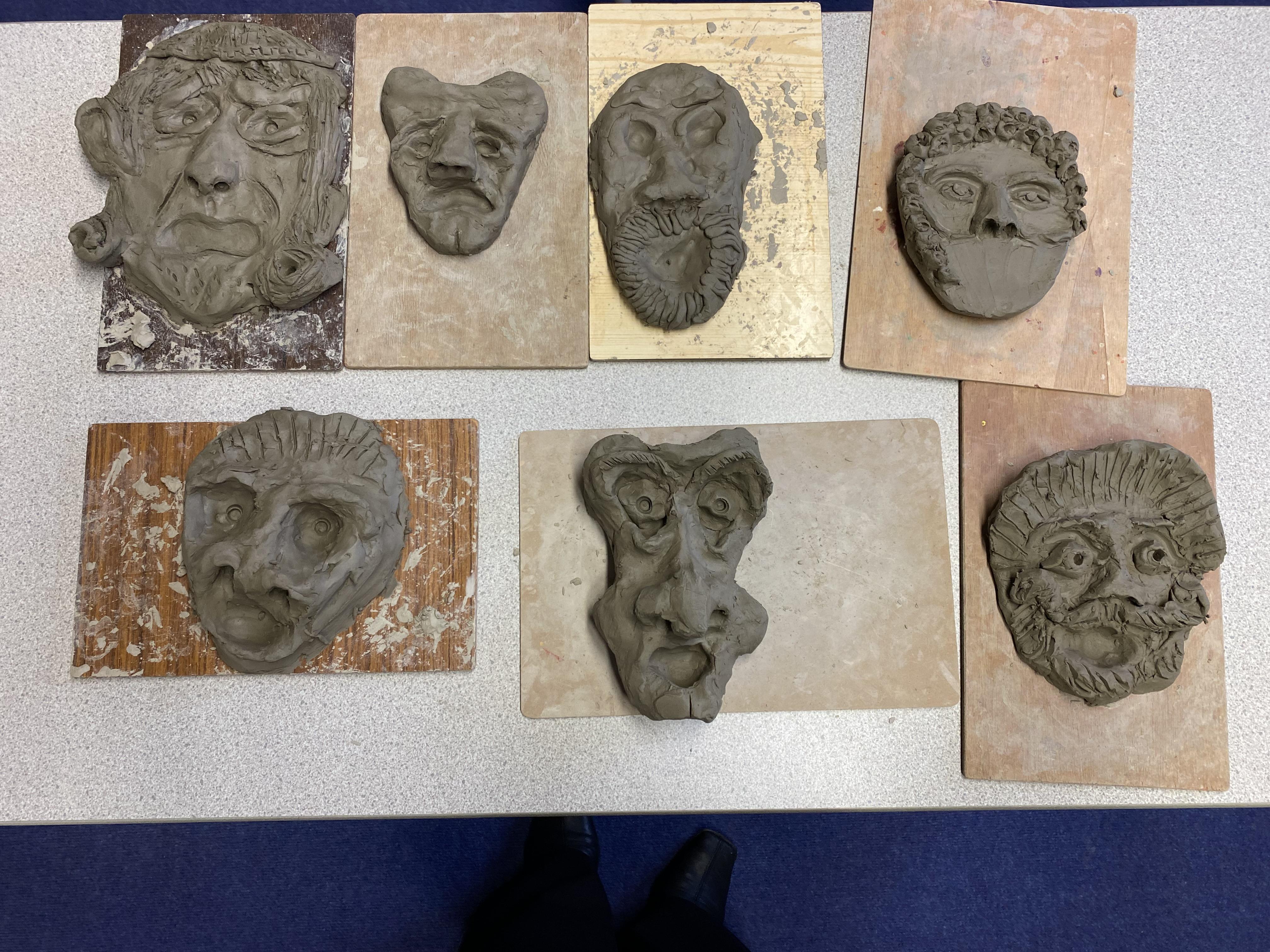 Year 6's Clay Sculpture work - Ancient Greek Theatre Masks