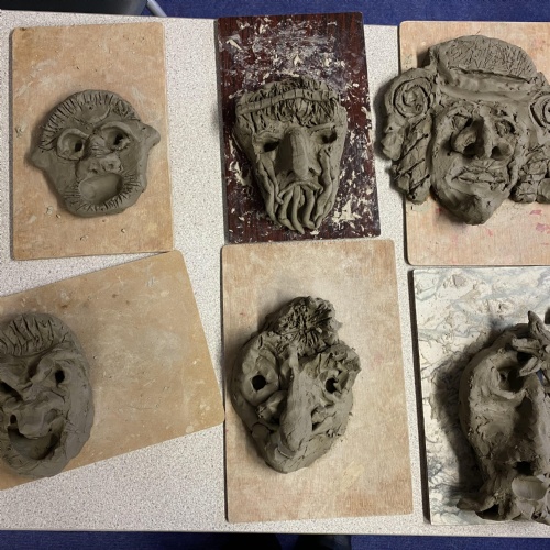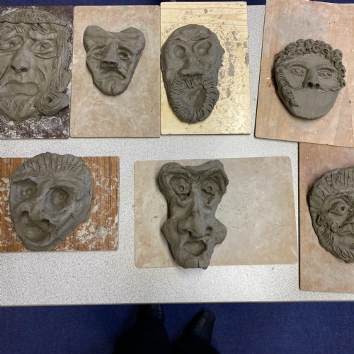 Year 6's Clay Sculpture work - Ancient Greek Theatre Masks
