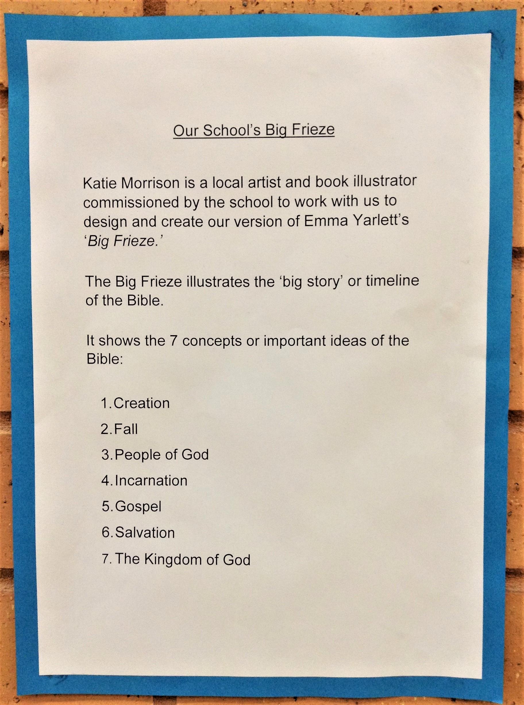 The Big Frieze illustrates the timeline of the Bible. It shows the 7 concepts or important issues in the Bible's big story.