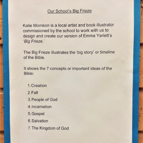 The Big Frieze illustrates the timeline of the Bible. It shows the 7 concepts or important issues in the Bible's big story.