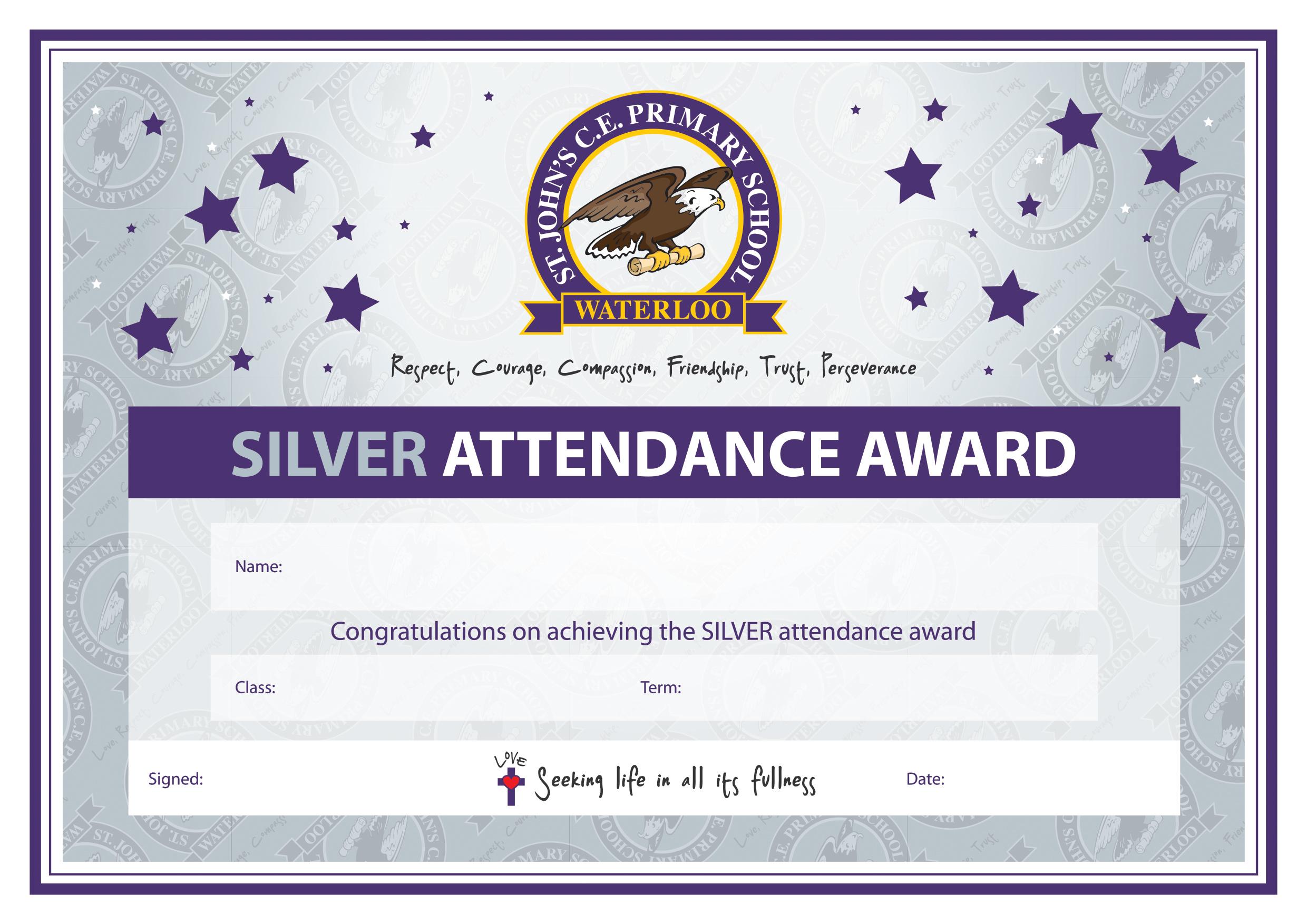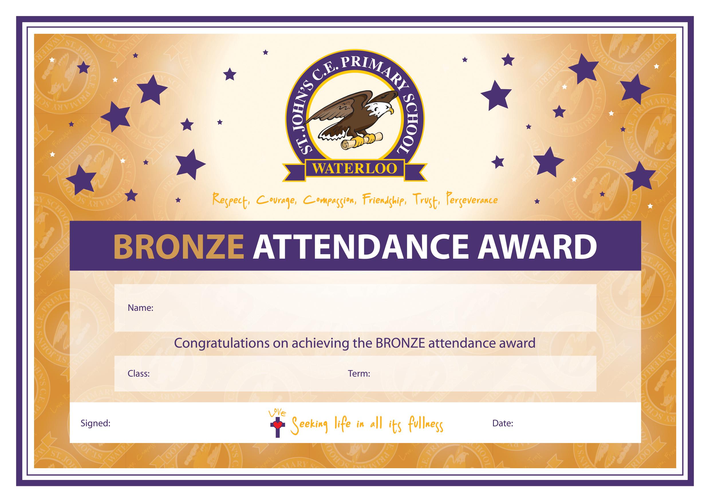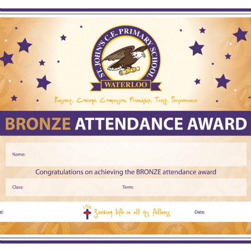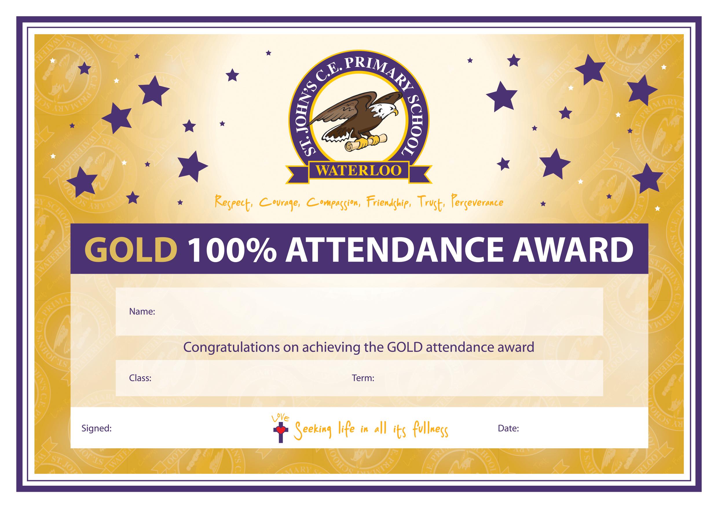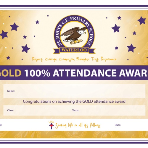 HALF TERMLY AWARDS: attendance certificates and a chocolate prize are awarded at the end of each half term during the attendance and merit assembly for the following attendance and punctuality: