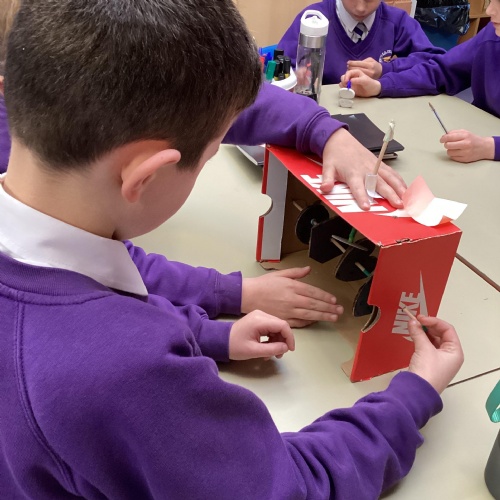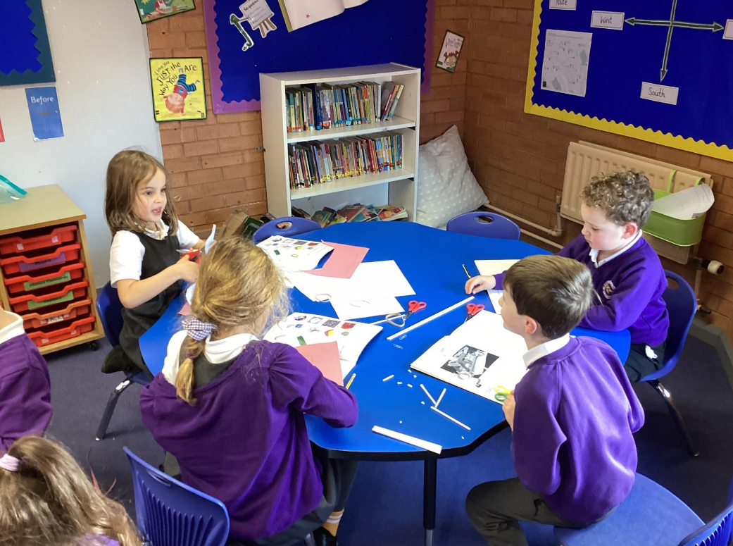 In Reception, we begin teaching DT through developing their knowledge, skills and understanding as described in the EYFS curriculum area of ‘expressive arts and design’ by providing opportunities for children to explore different materials and develop their ideas of how to use them and what to make. Children develop their fine motor skills and learn how to cut and join different materials.