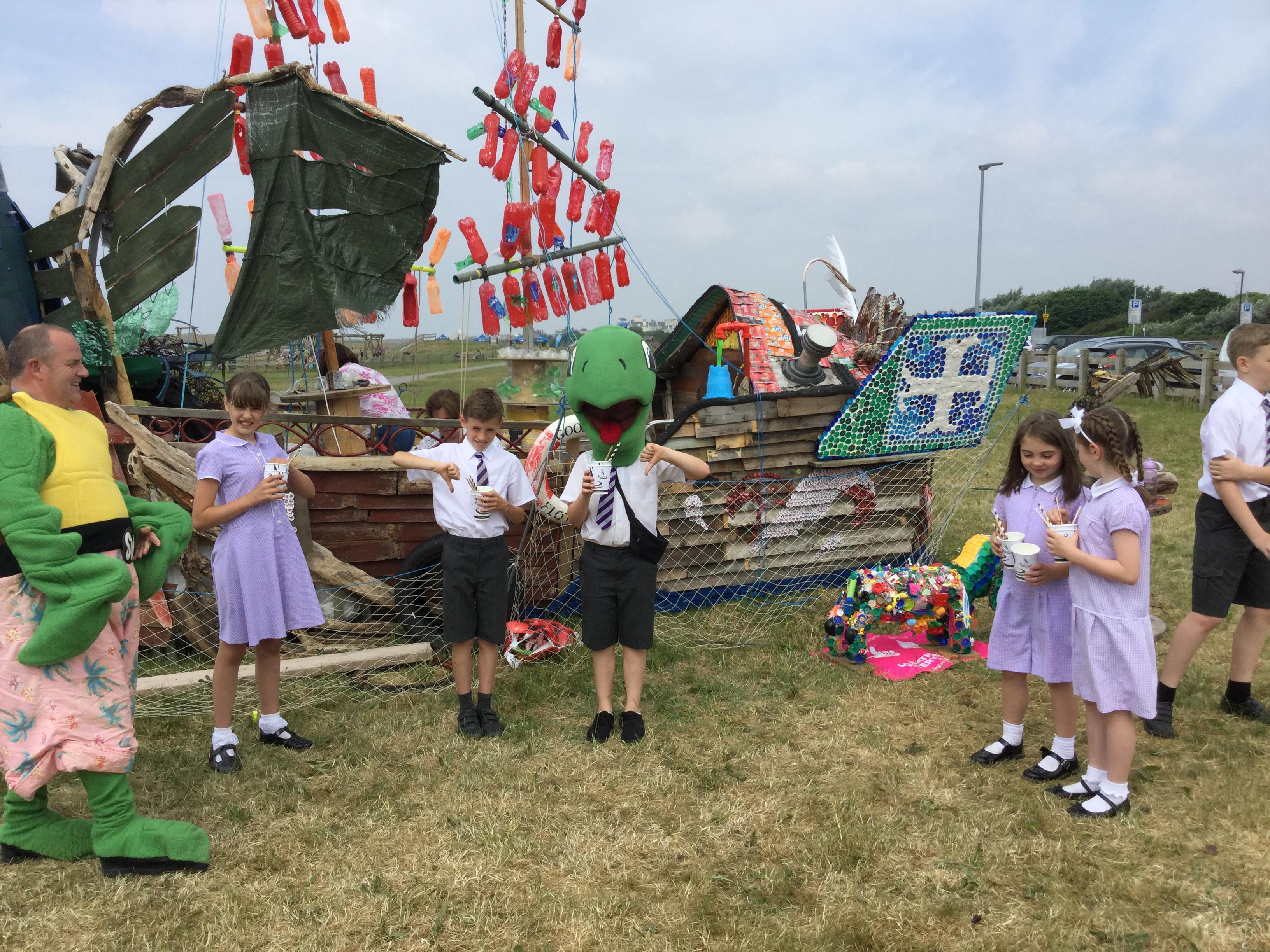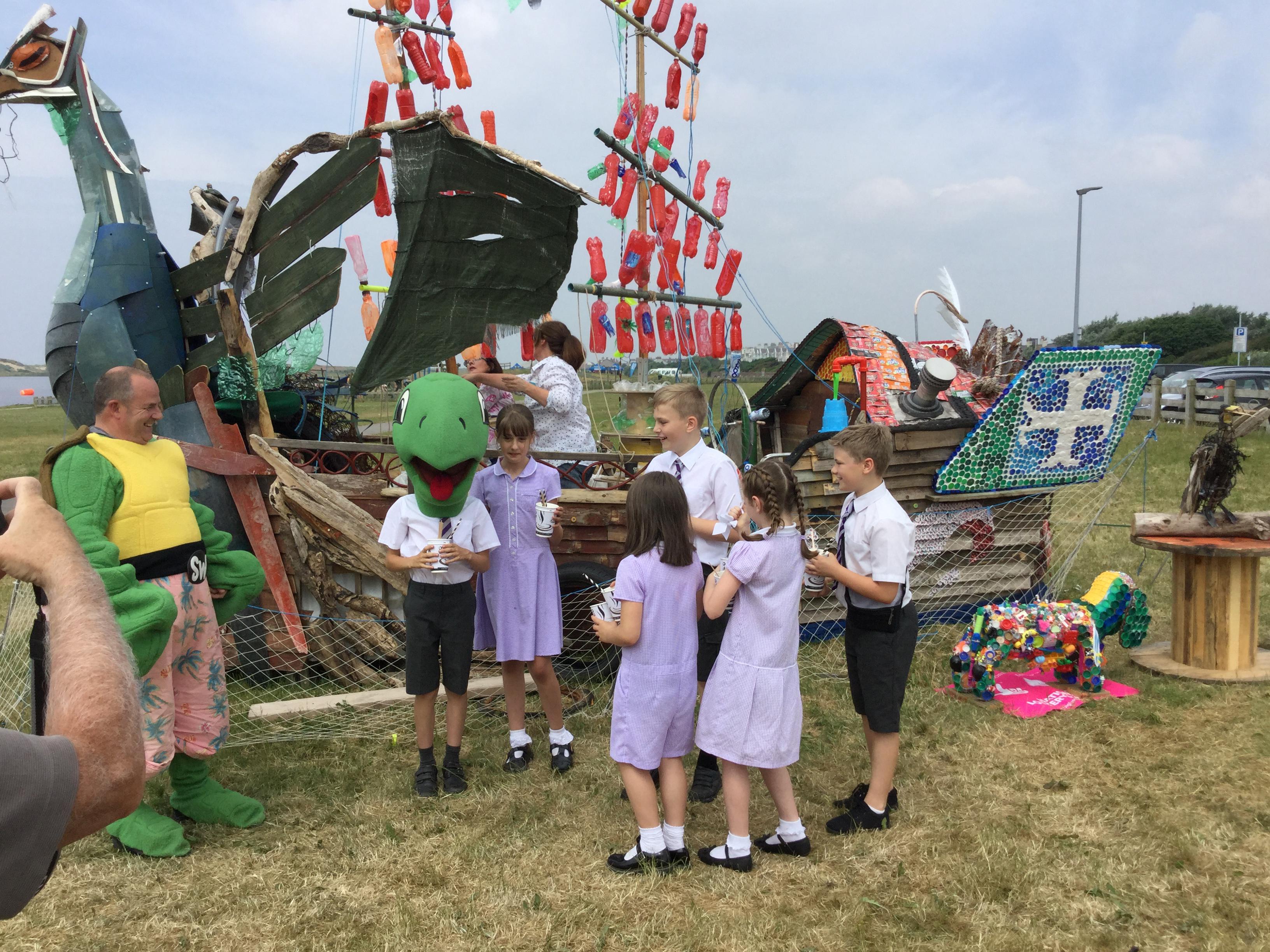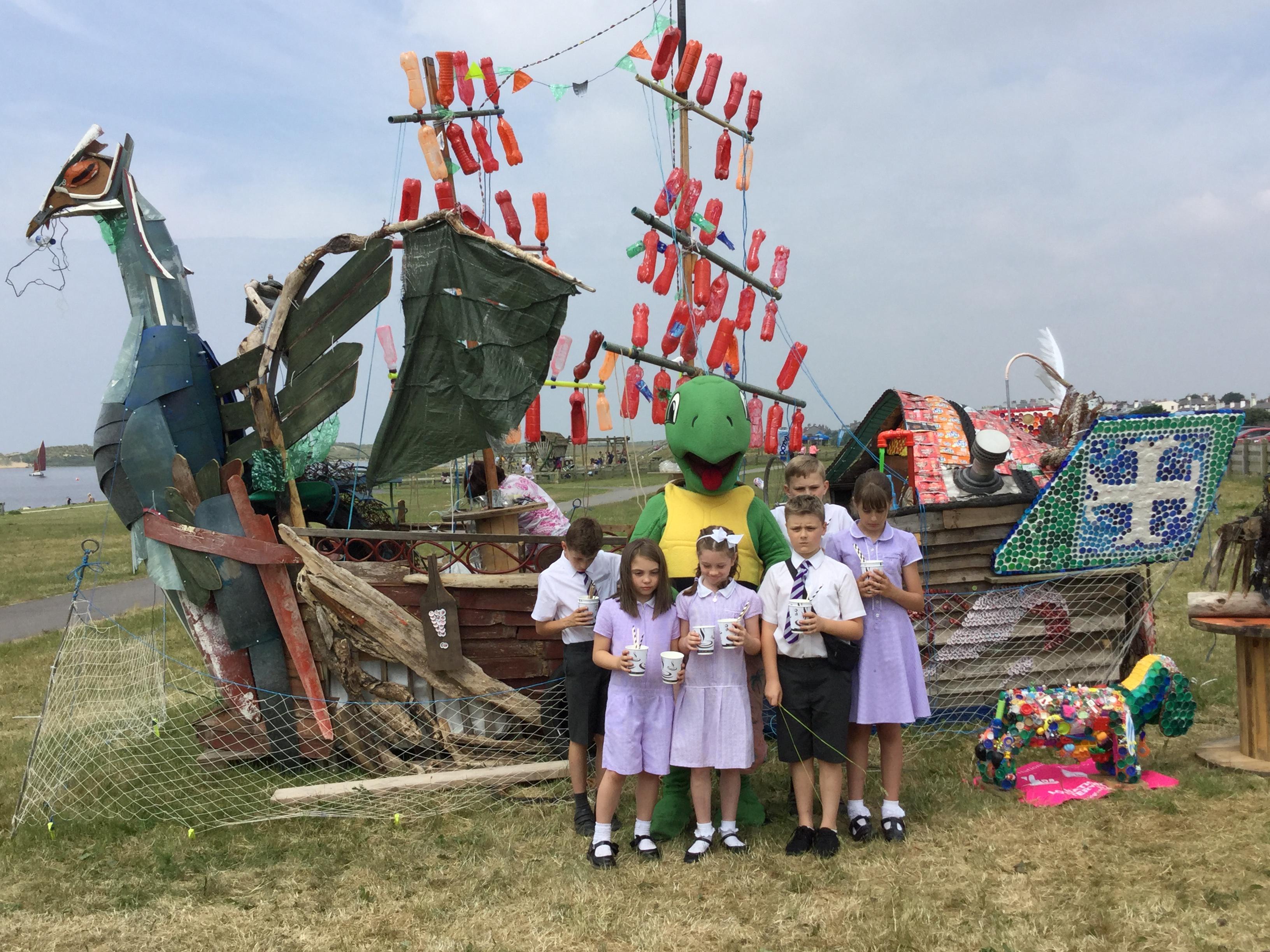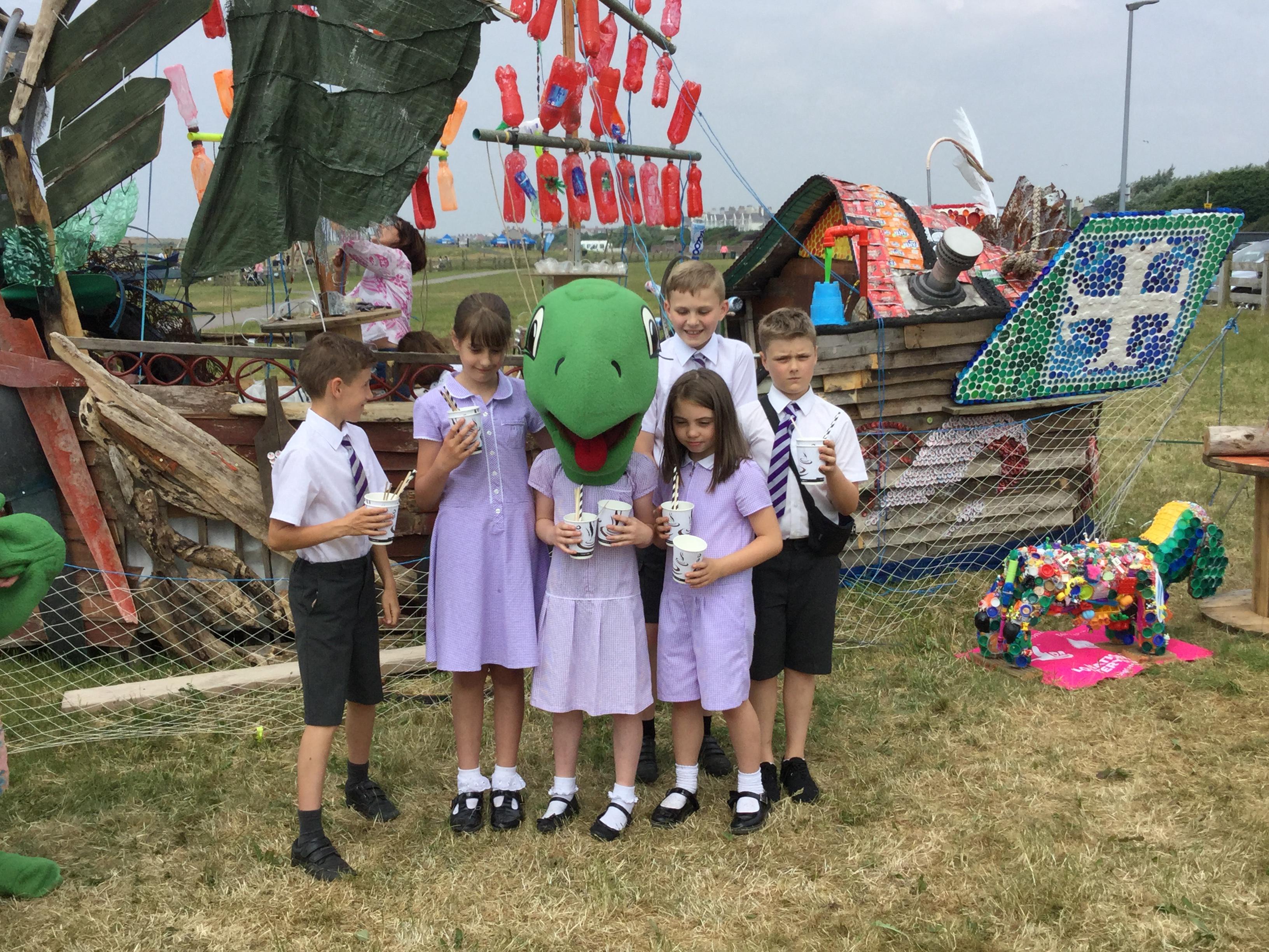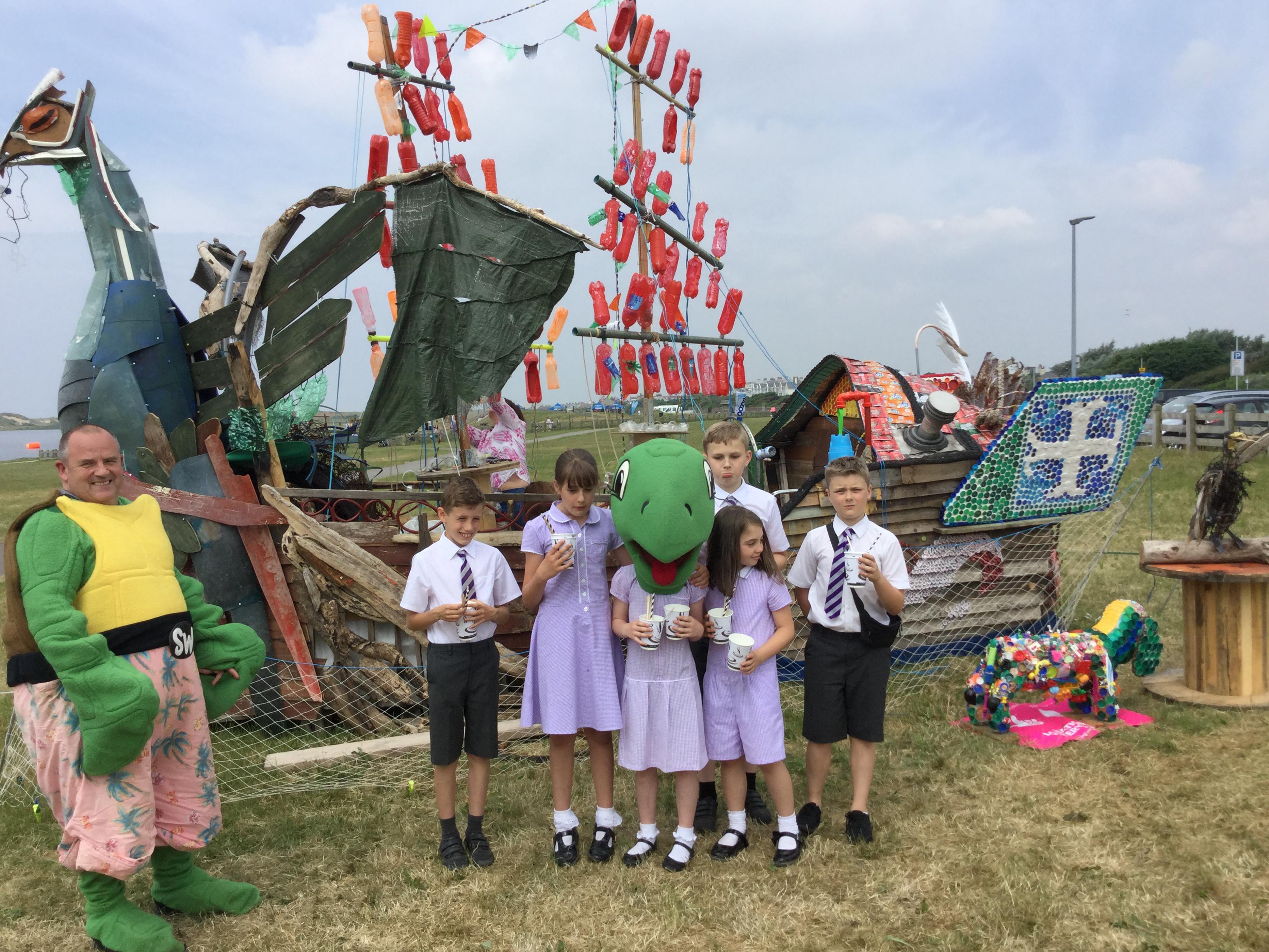 This summer, Class 5 were asked to create a piece of art using nothing but recycled materials. The project -The Good Ship Flotsam- is a ship that has been designed by local artist Lynne Winstanley to recognise the global environmental issues caused by marine pollution. St John's pupils worked strenuously, collecting as many bottle tops as they possible could,  to create a mosaic of the Sefton cross. Take a look at our pictures below, or why not visit the ship itself at Crosby Marina, to see the wonderful piece of art created by our talented children.
