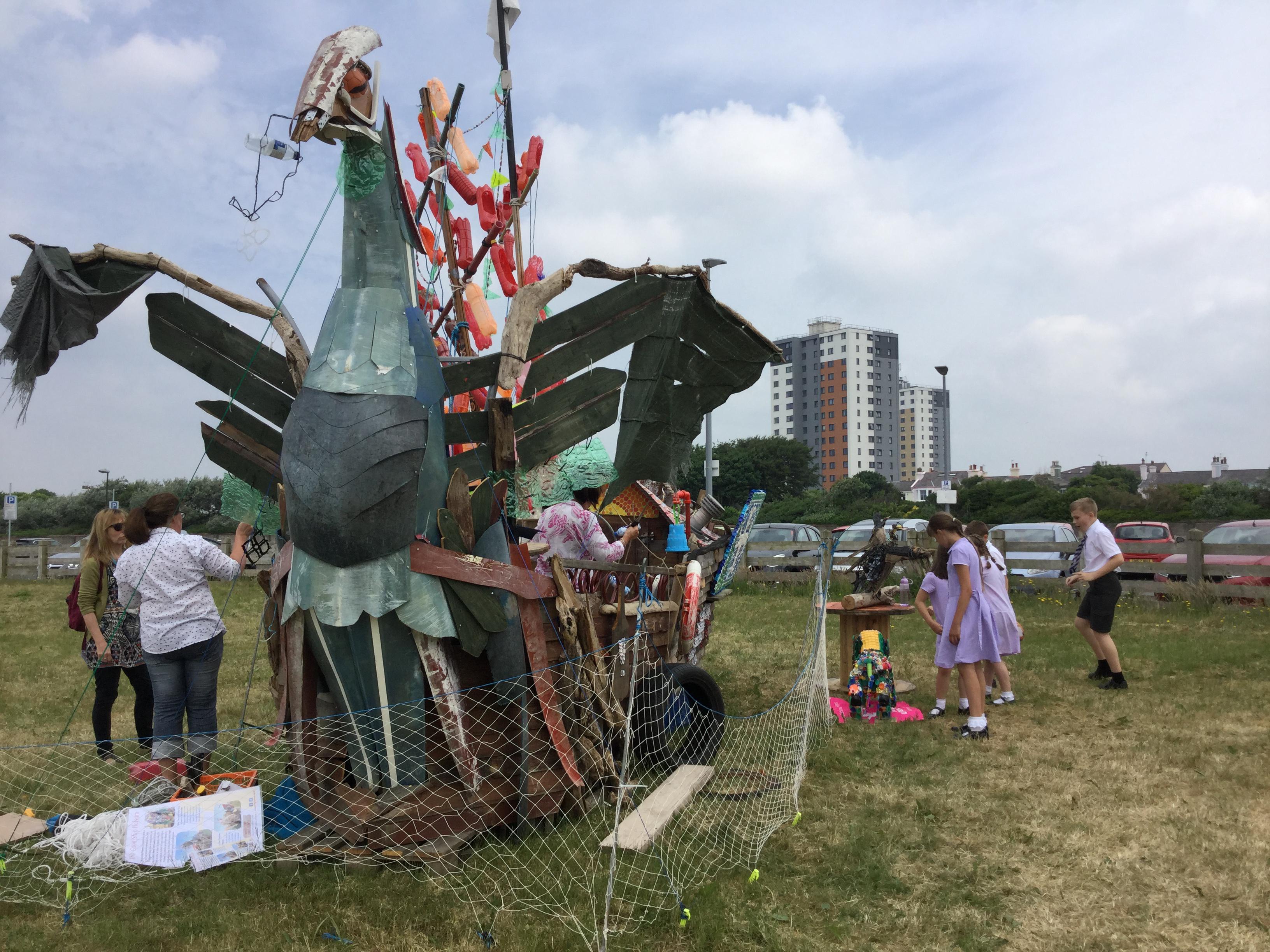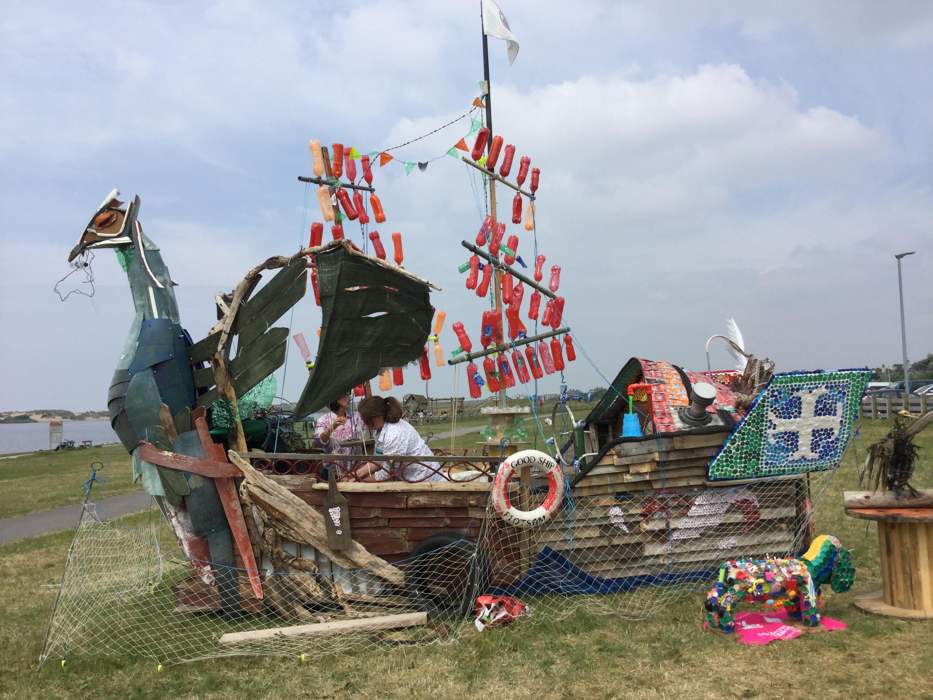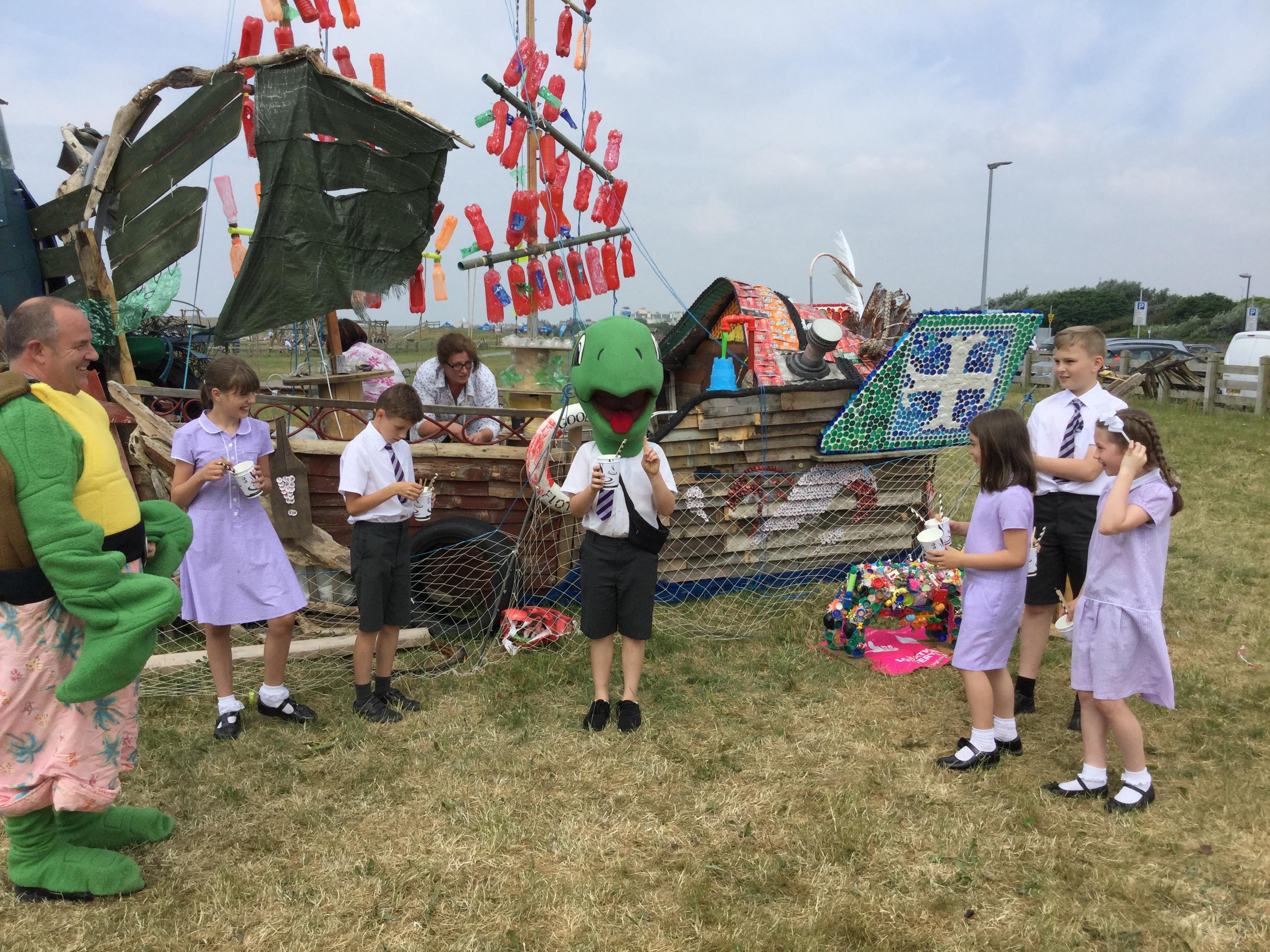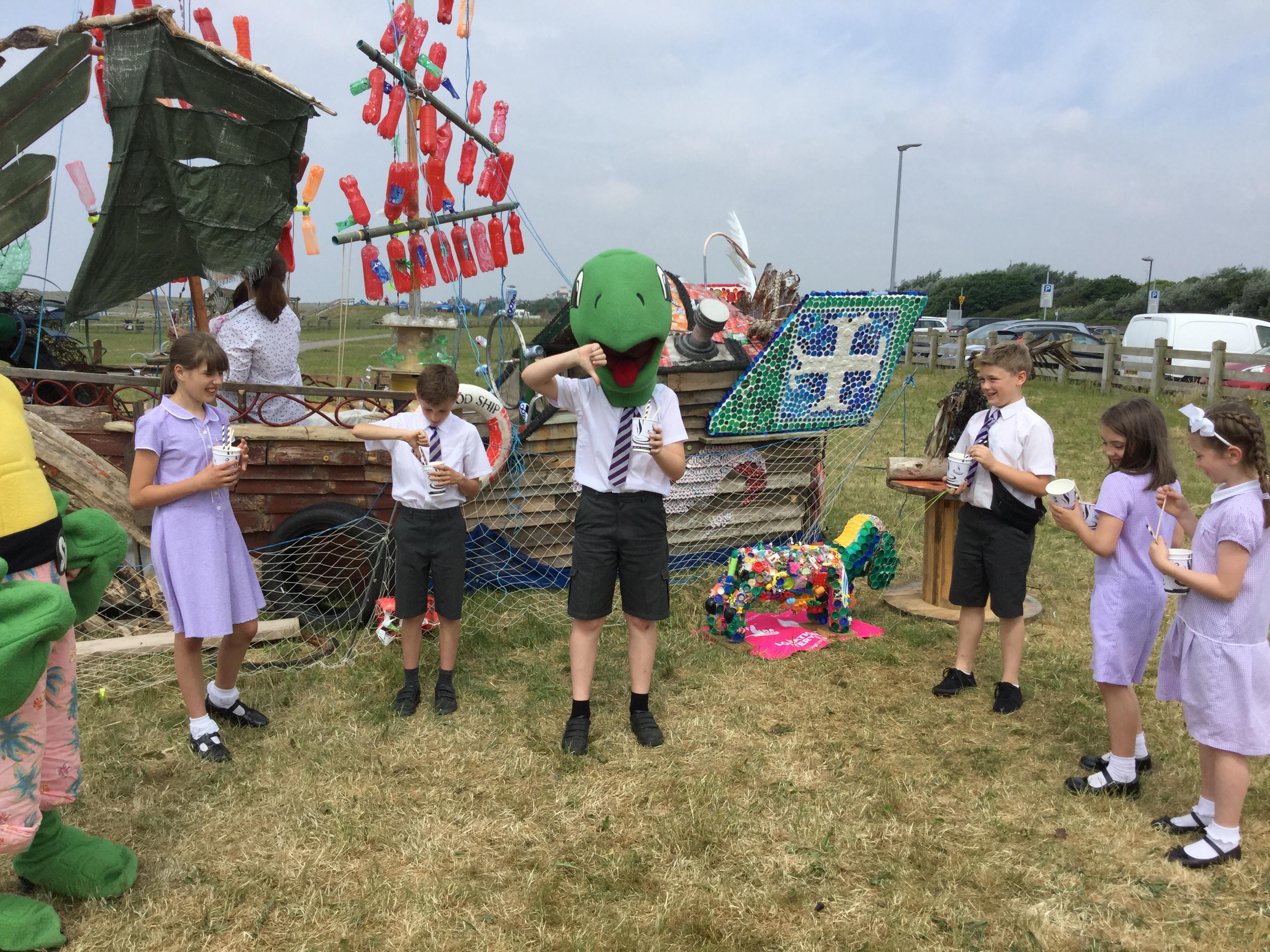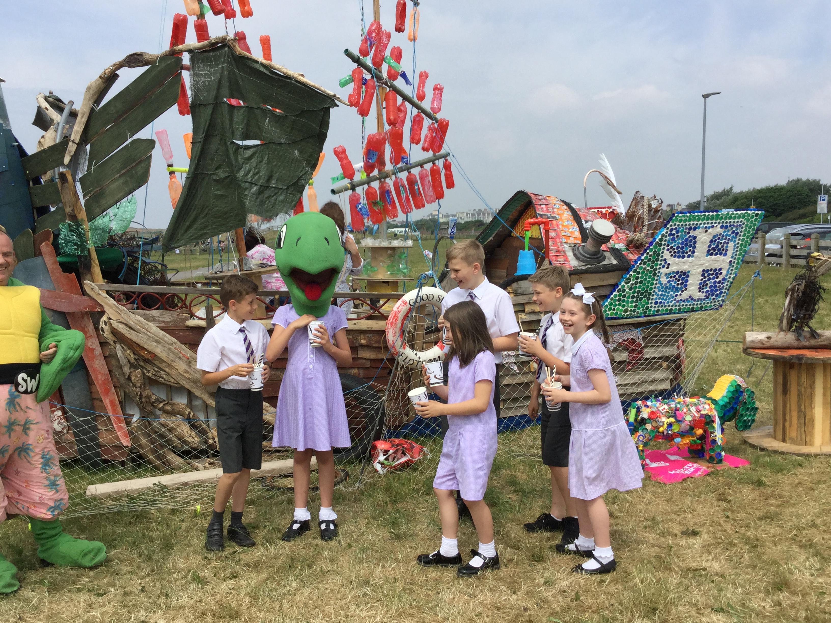 This summer, Class 5 were asked to create a piece of art using nothing but recycled materials. The project -The Good Ship Flotsam- is a ship that has been designed by local artist Lynne Winstanley to recognise the global environmental issues caused by marine pollution. St John's pupils worked strenuously, collecting as many bottle tops as they possible could,  to create a mosaic of the Sefton cross. Take a look at our pictures below, or why not visit the ship itself at Crosby Marina, to see the wonderful piece of art created by our talented children.