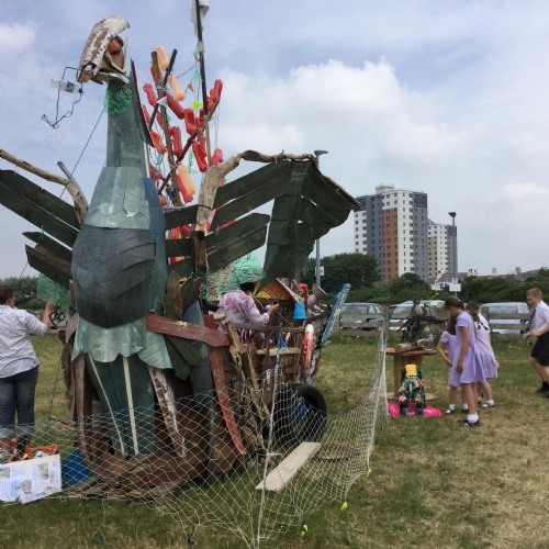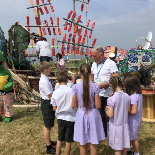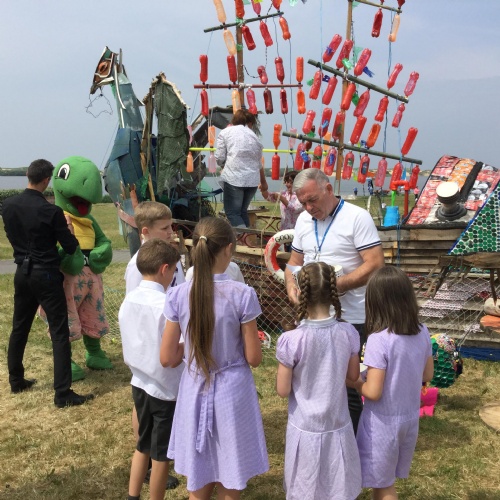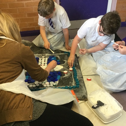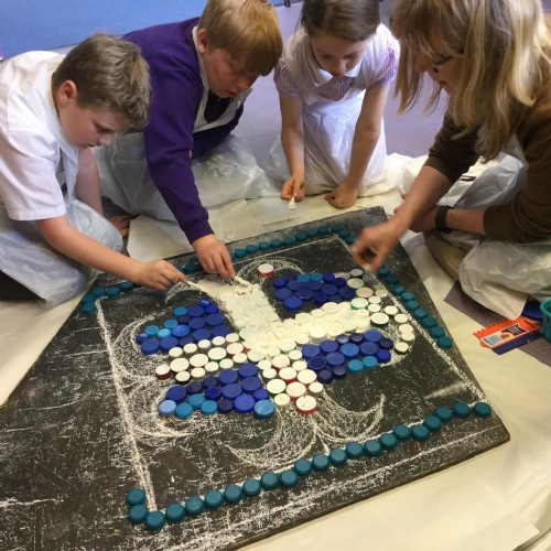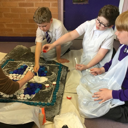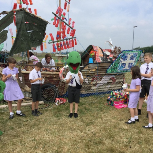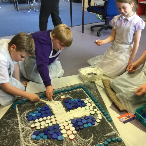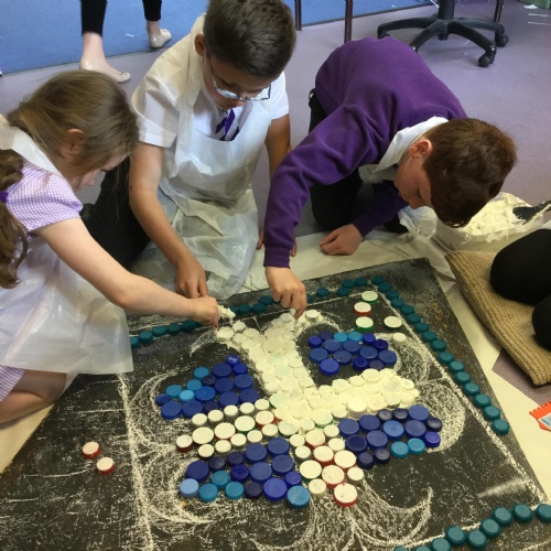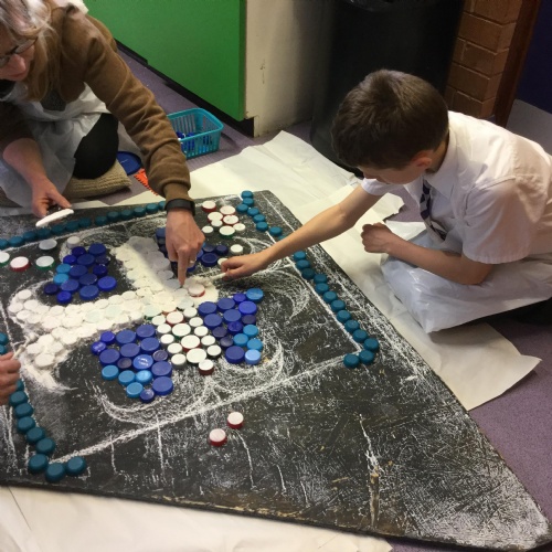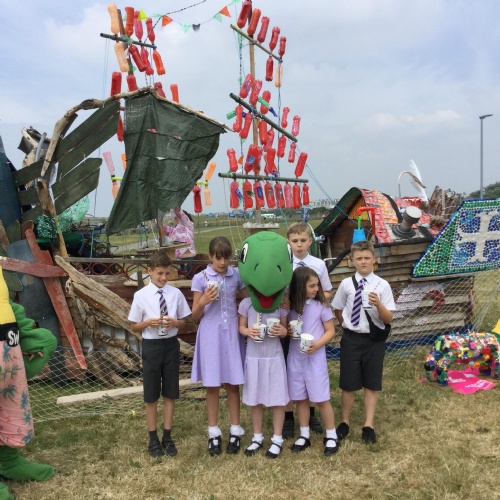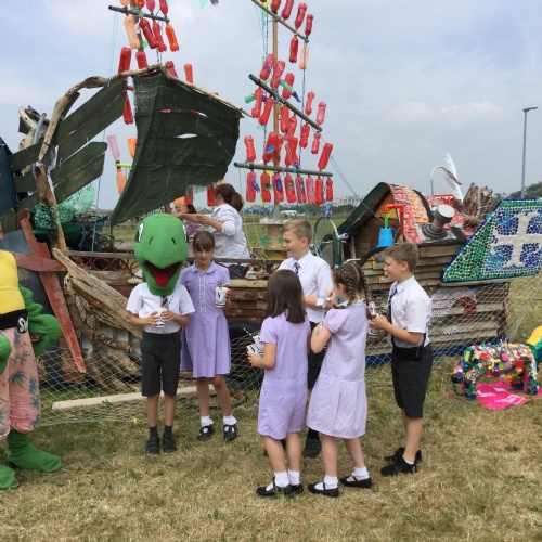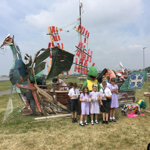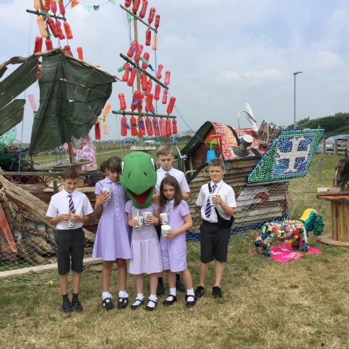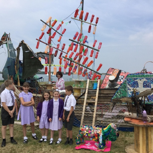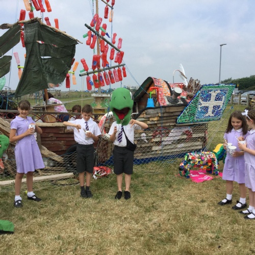 This summer, Class 5 were asked to create a piece of art using nothing but recycled materials. The project -The Good Ship Flotsam- is a ship that has been designed by local artist Lynne Winstanley to recognise the global environmental issues caused by marine pollution. St John's pupils worked strenuously, collecting as many bottle tops as they possible could, to create a mosaic of the Sefton cross. Take a look at our pictures below, or why not visit the ship itself at Crosby Marina, to see the wonderful piece of art created by our talented children.