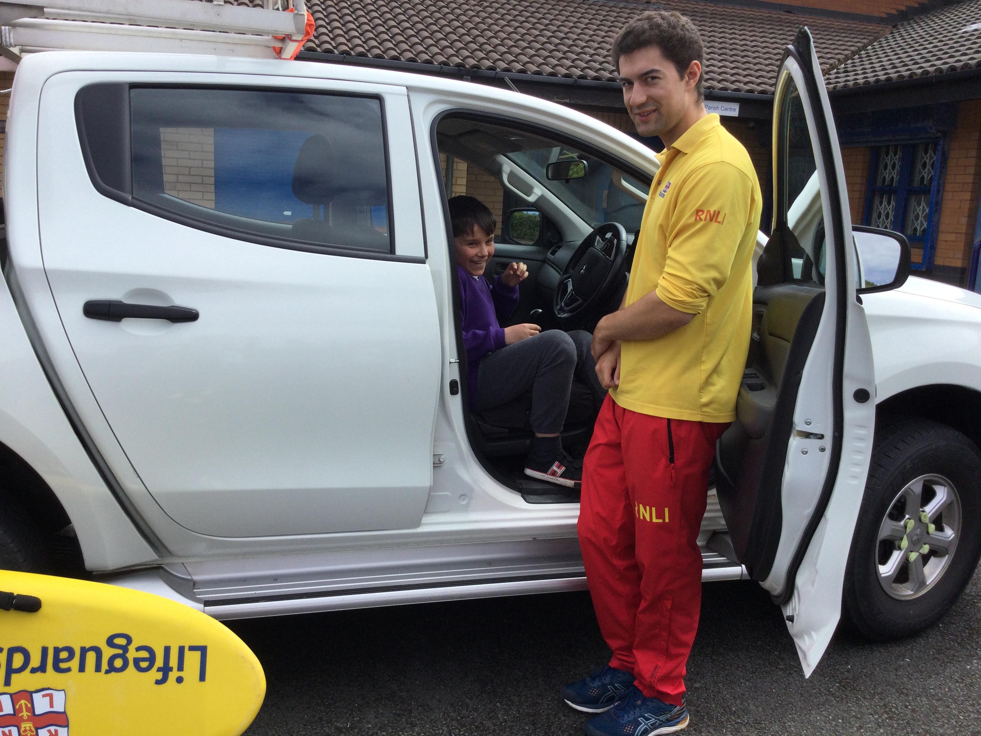 We went outside and saw the white lifeguard truck and some of the equipment they use to help to keep us safe!