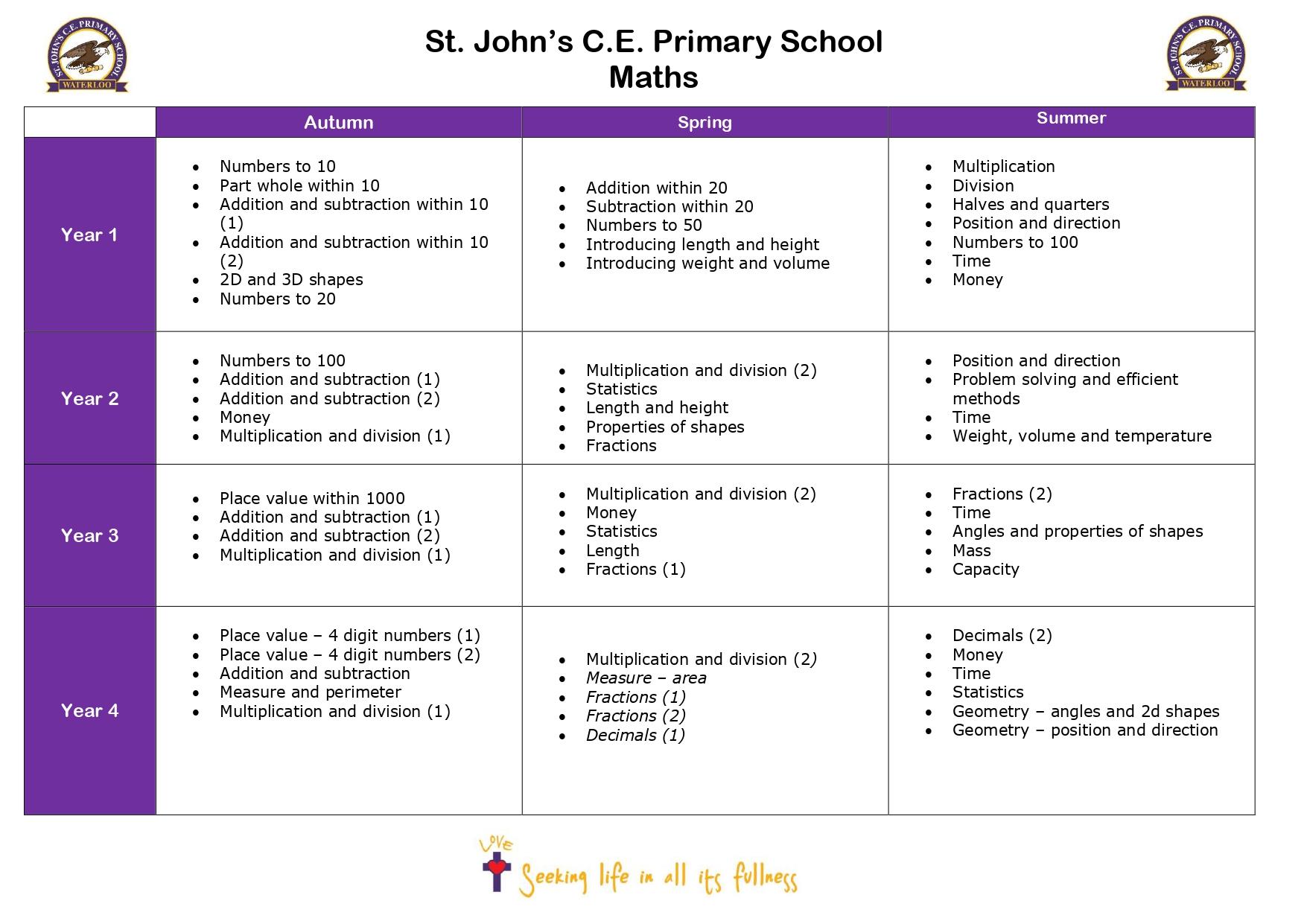 Our mathematics curriculum is carefully planned and structured to ensure progression across topics throughout each year group across the school. To ensure whole school consistency and progression, at St John’s CE Primary School, we use the DfE approved ‘Power Maths’ scheme, which is fully aligned with the White Rose Maths scheme.