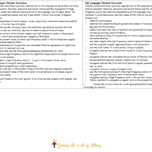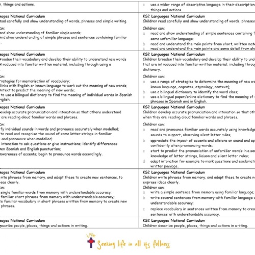 At St. John's, the chosen language taught is Spanish and provides our children with a strong foundation on which to continue language learning at secondary school. Learning another language deepens our children's understanding of the world and encourages them to seek "life in all its fullness" by igniting aspirations for future learning, experiences, and careers.