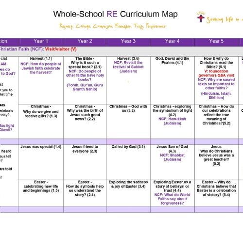 Pupils are encouraged to ask important questions and consequently become confident in expressing their views and discussing challenging issues in RE within the context of our Christian values of respect, courage, compassion, friendship, trust, and perseverance.