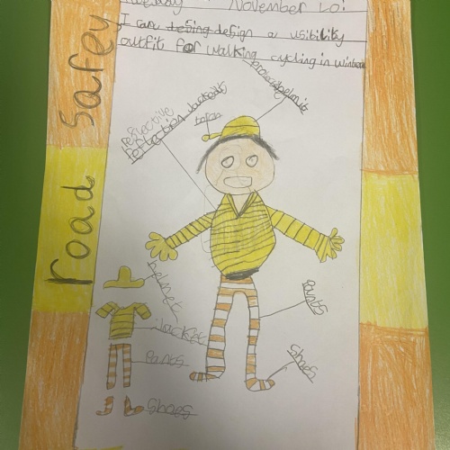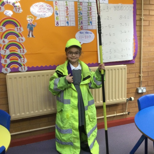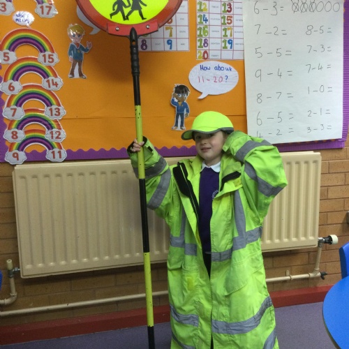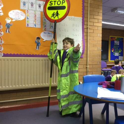 Year 1: We had a visit from our Lollipop Lady. We learnt about the Green Cross Code and how to cross the road safely.