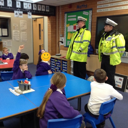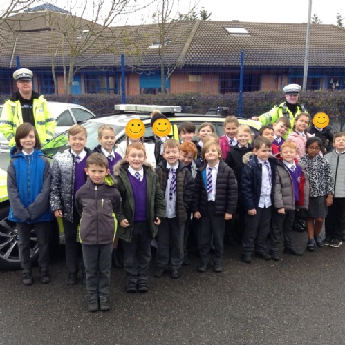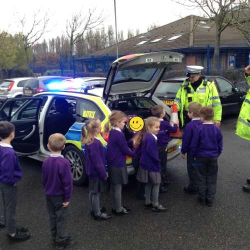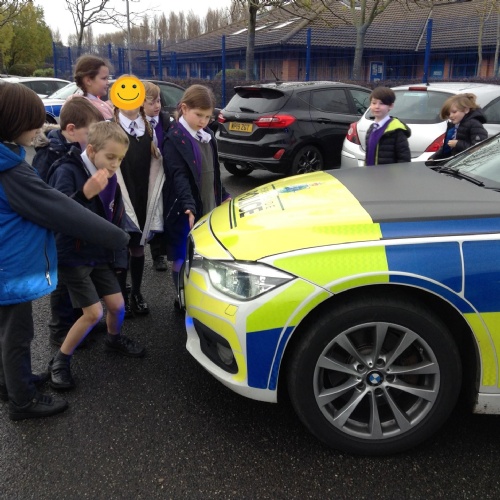 Year 3: We had a great visit from two police officers from our local police force. We learned about how to be safe walking near roads, had a chance to ask questions and got to see the police car!