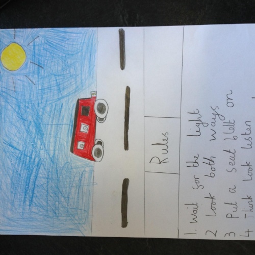 Year 2 had a visit from local Road Traffic Officers. They got the chance to ask lots of questions and even have a look at the squad cars! They then made Road Safety posters to warn others about dangers and rules of the road.