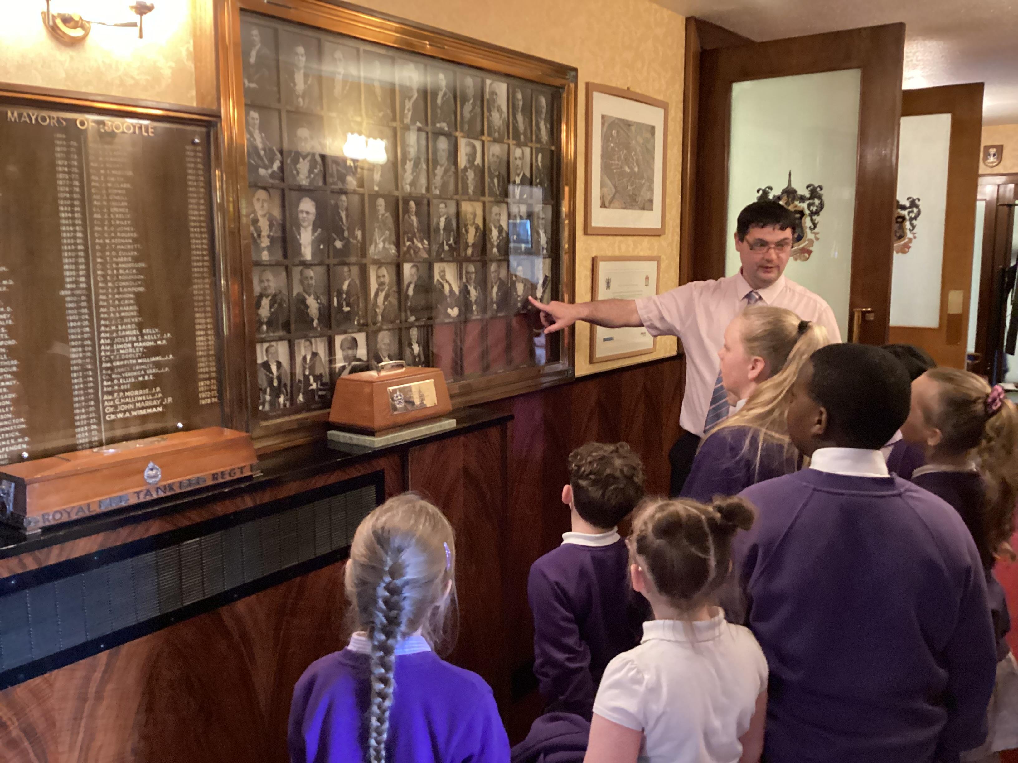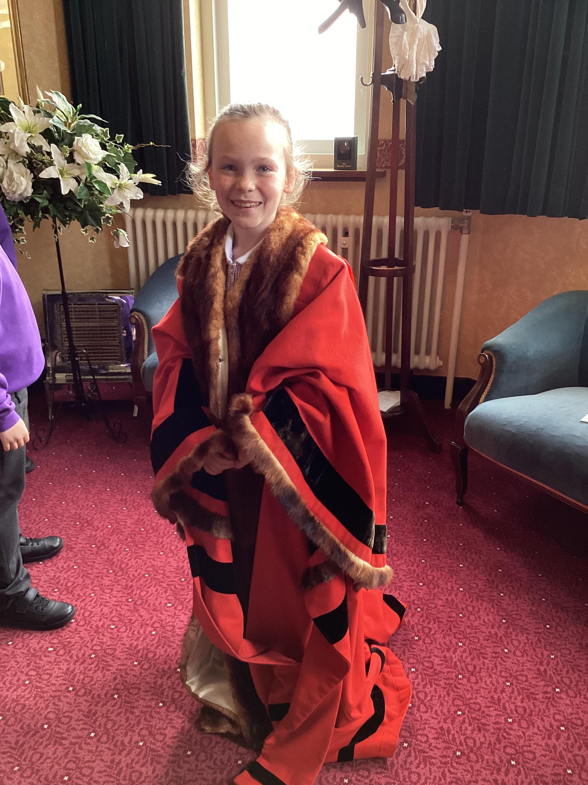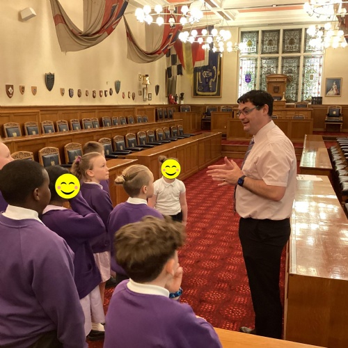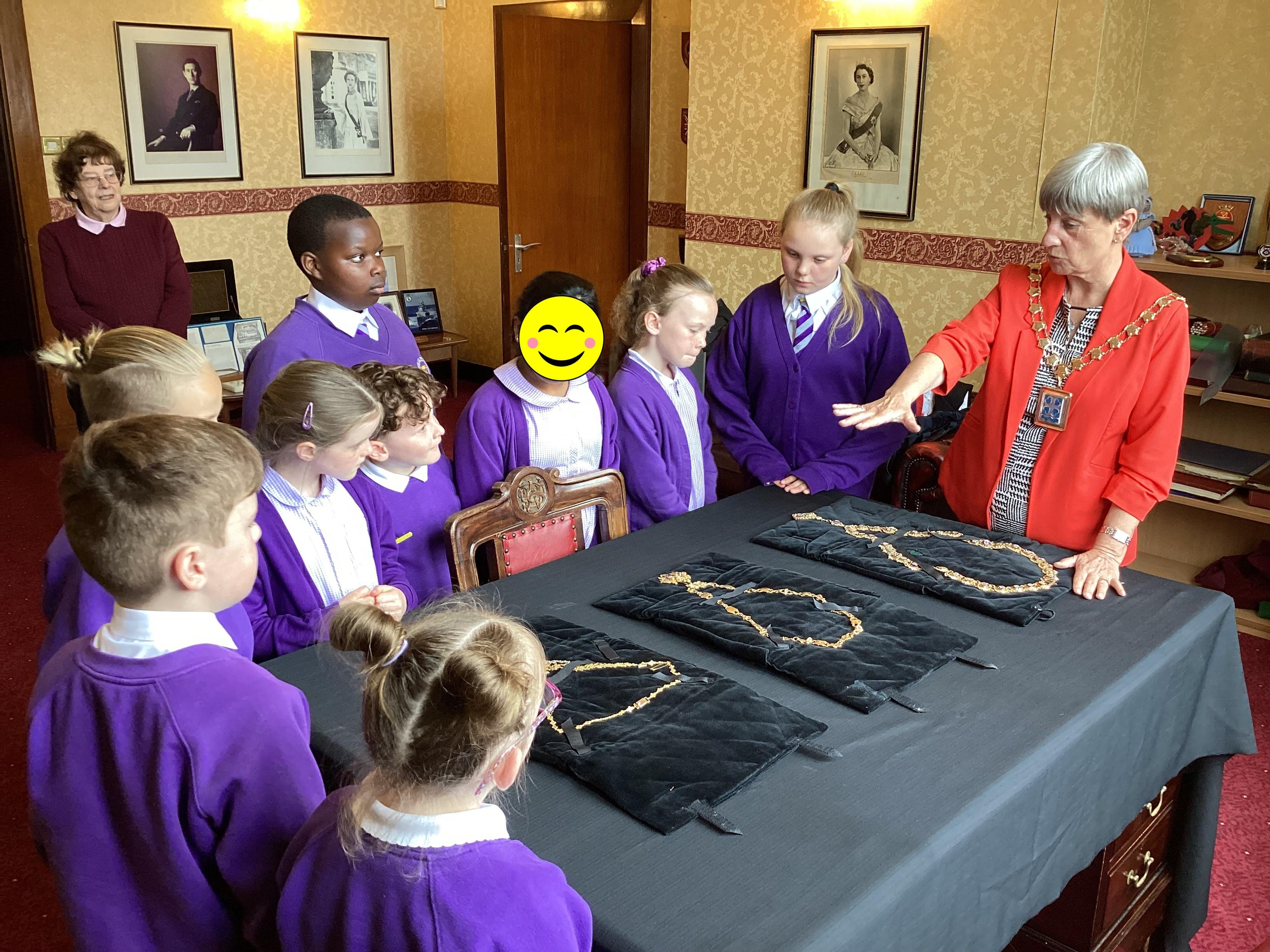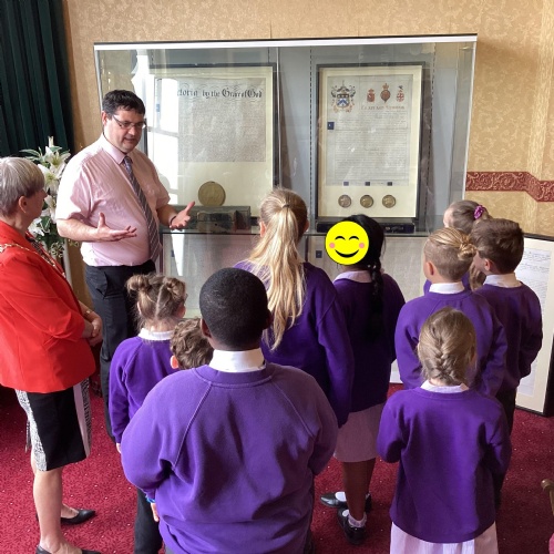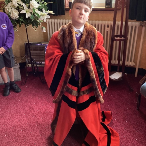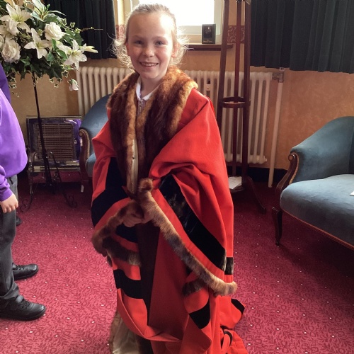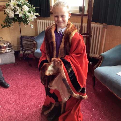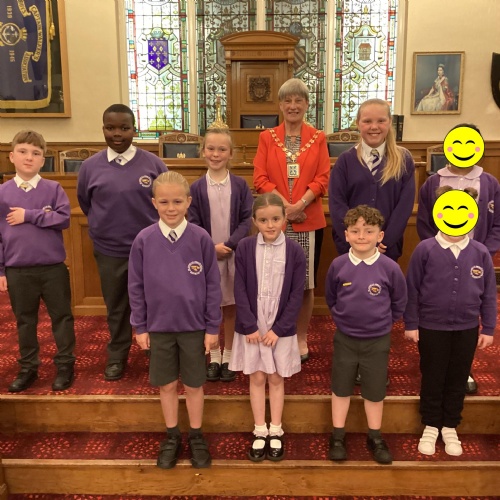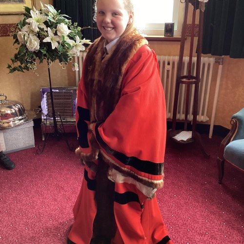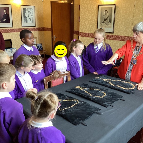 We had a great experience in May 2024 when we were able to visit the Mayor of Sefton, Cllr June Burns. We prepared some questions to ask the Mayor and learned all about her role. She told us the best thing about being the mayor is all the people she gets to meet and all the cake she gets to eat! We also were given a tour of the Town Hall, visiting the Council Chamber and the Mayor's room. We were allowed to touch some of the mayor's gold chains and try on her mayor's robes!