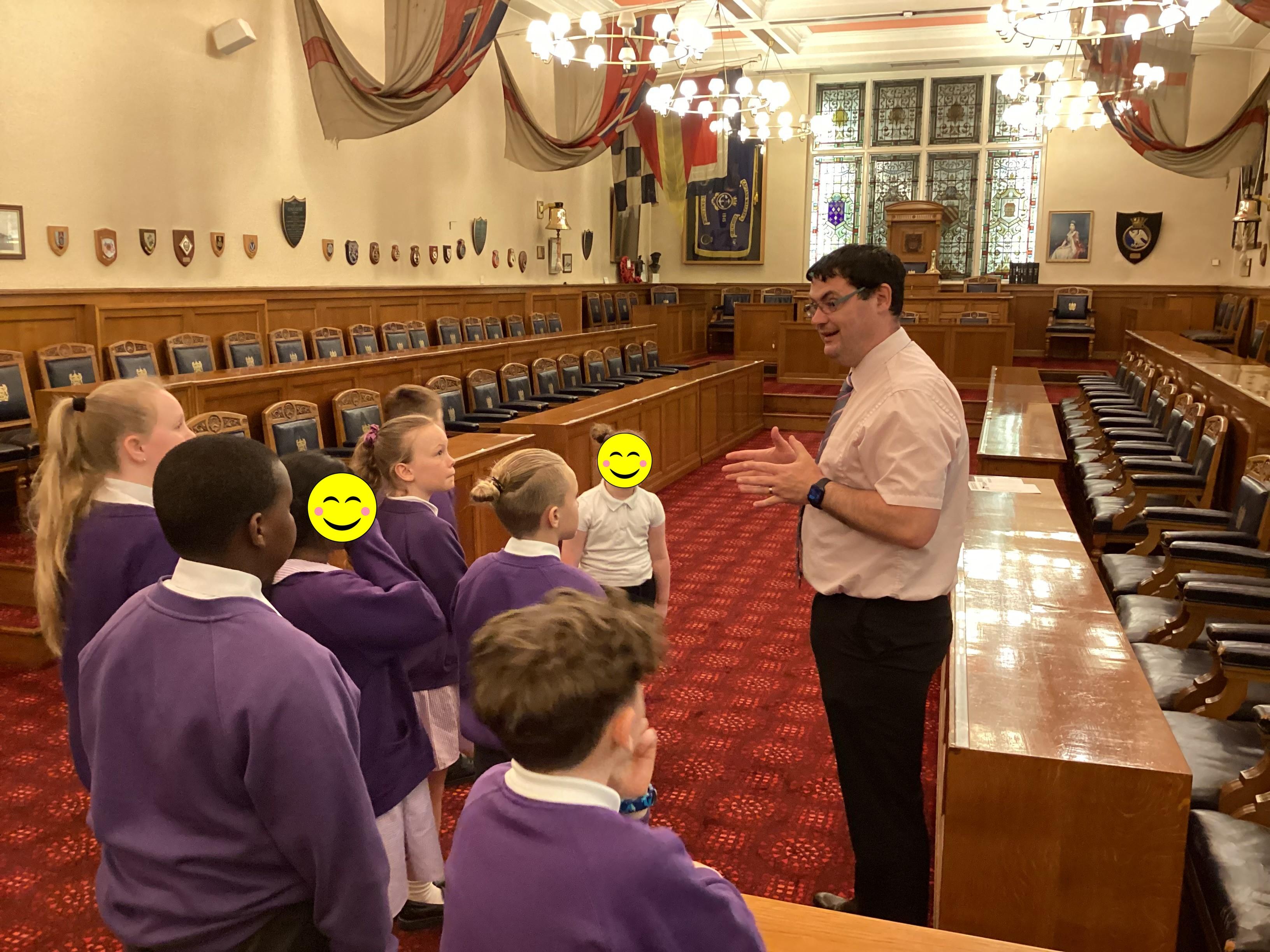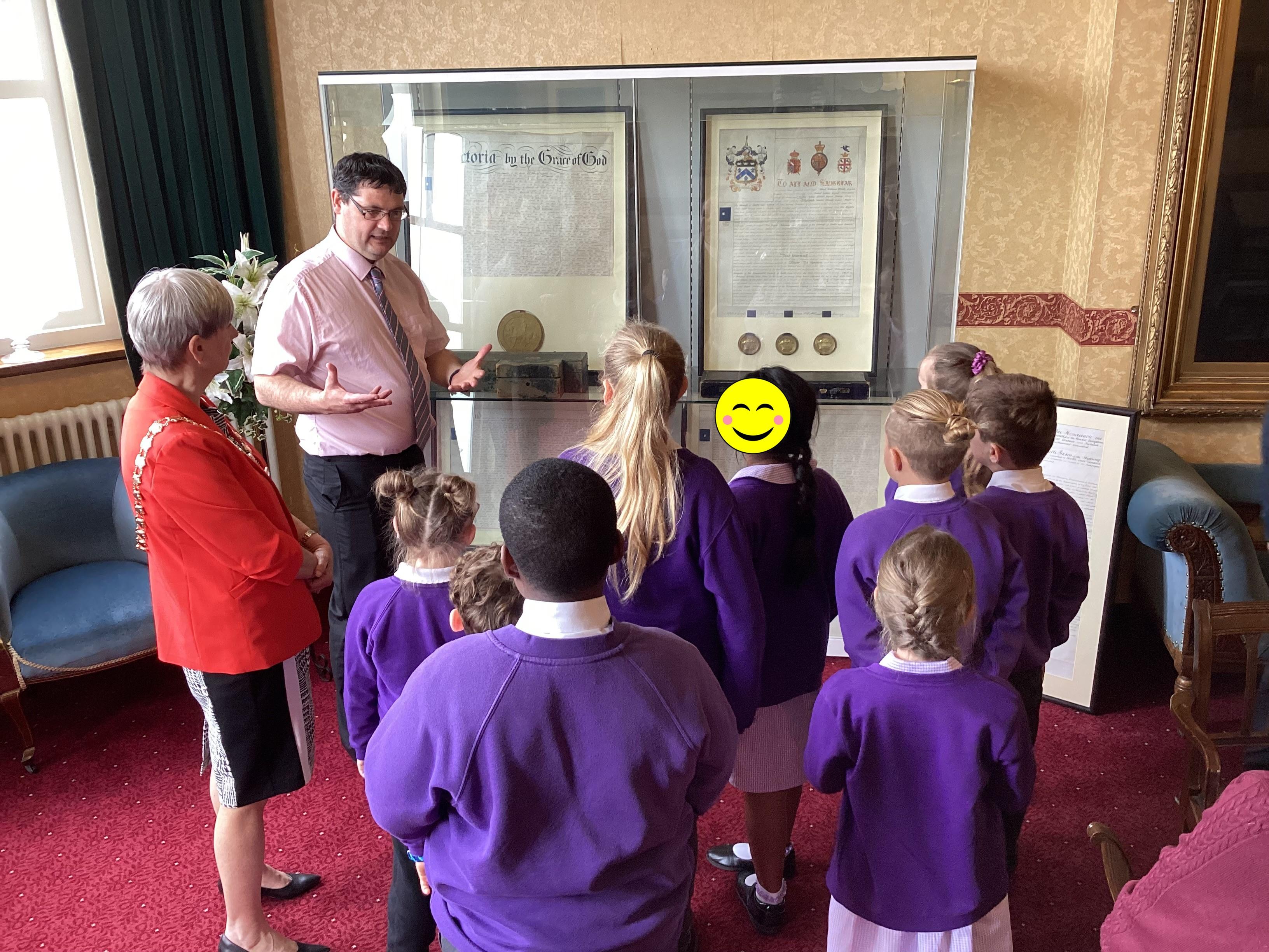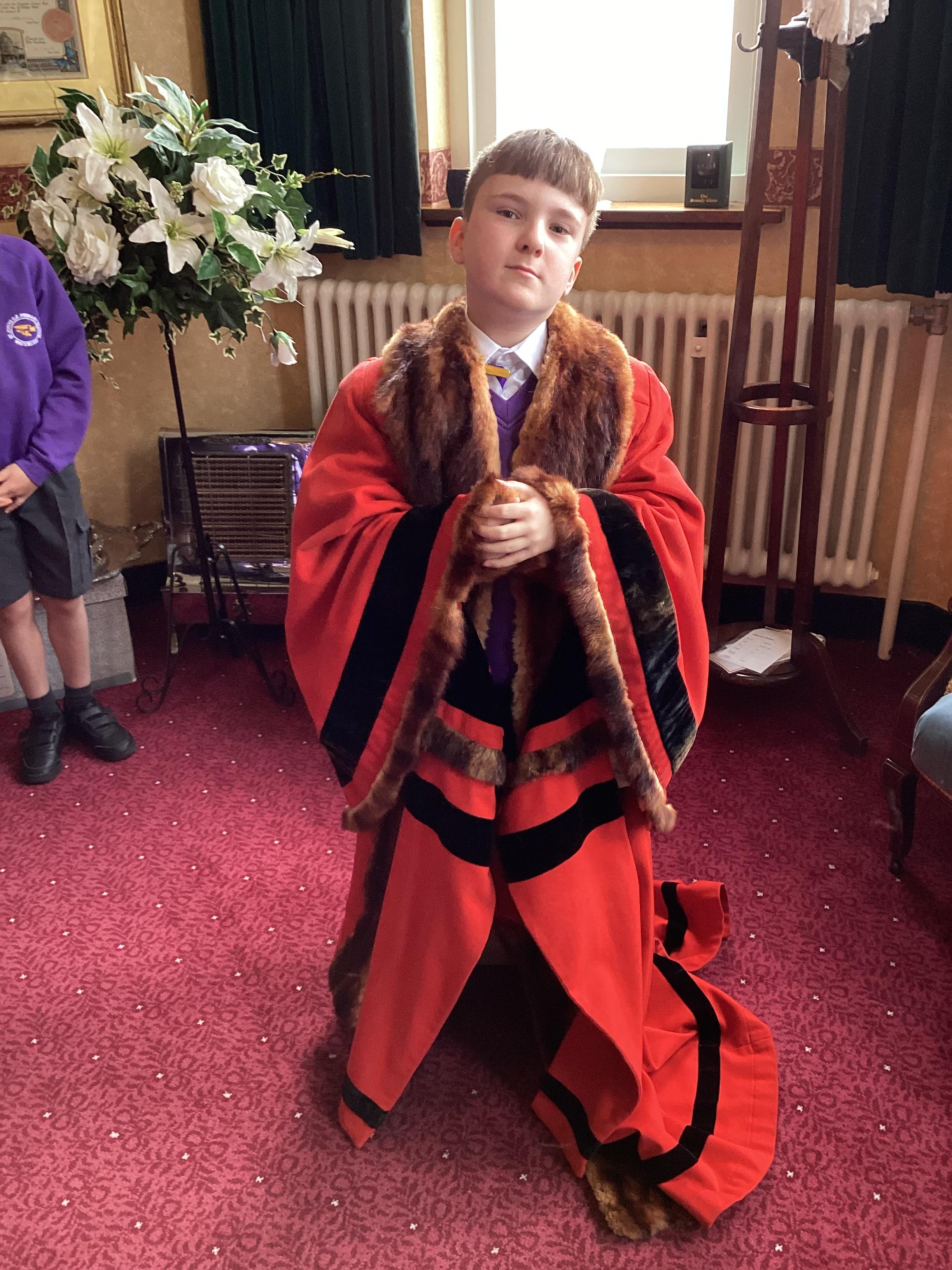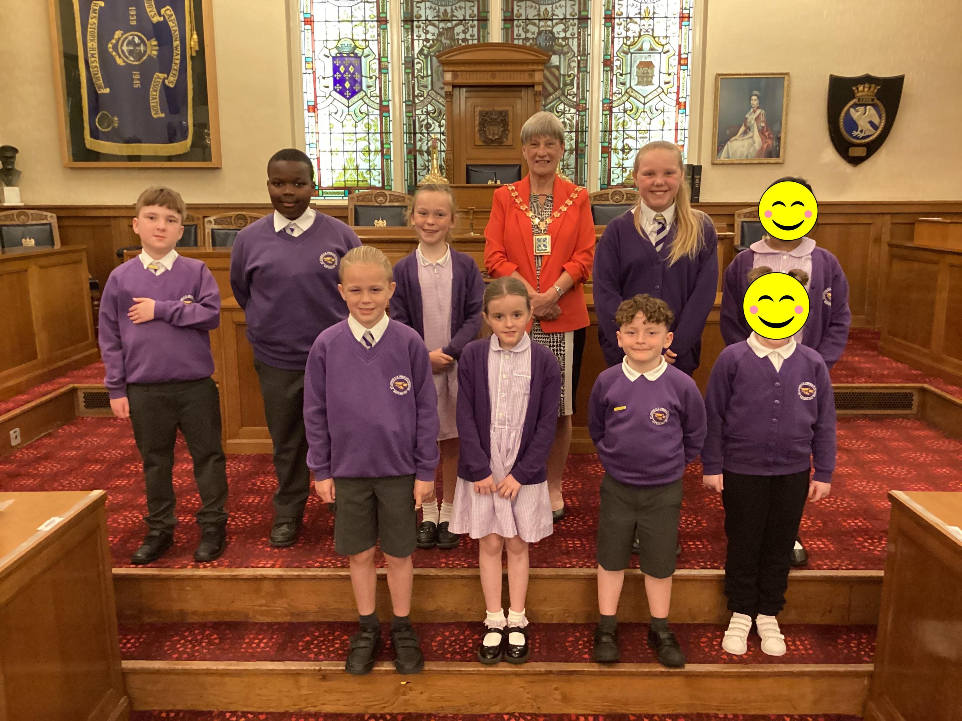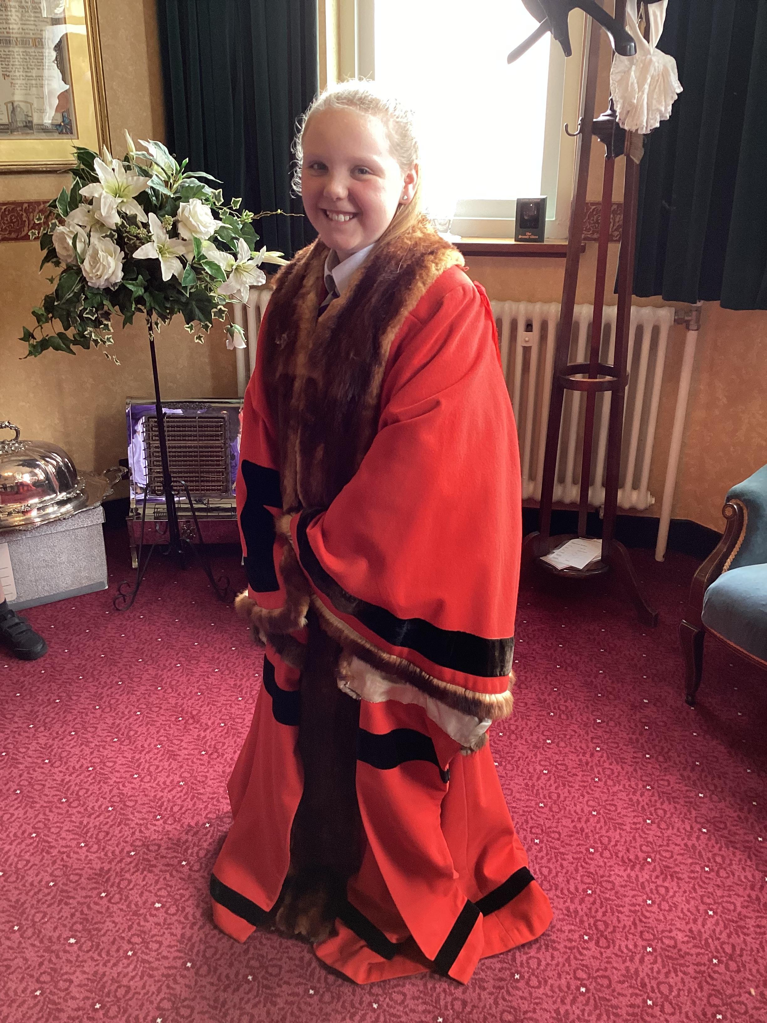 We had a great experience in May 2024 when we were able to visit the Mayor of Sefton, Cllr June Burns. We prepared some questions to ask the Mayor and learned all about her role. She told us the best thing about being the mayor is all the people she gets to meet and all the cake she gets to eat! We also were given a tour of the Town Hall, visiting the Council Chamber and the Mayor's room. We were allowed to touch some of the mayor's gold chains and try on her mayor's robes!