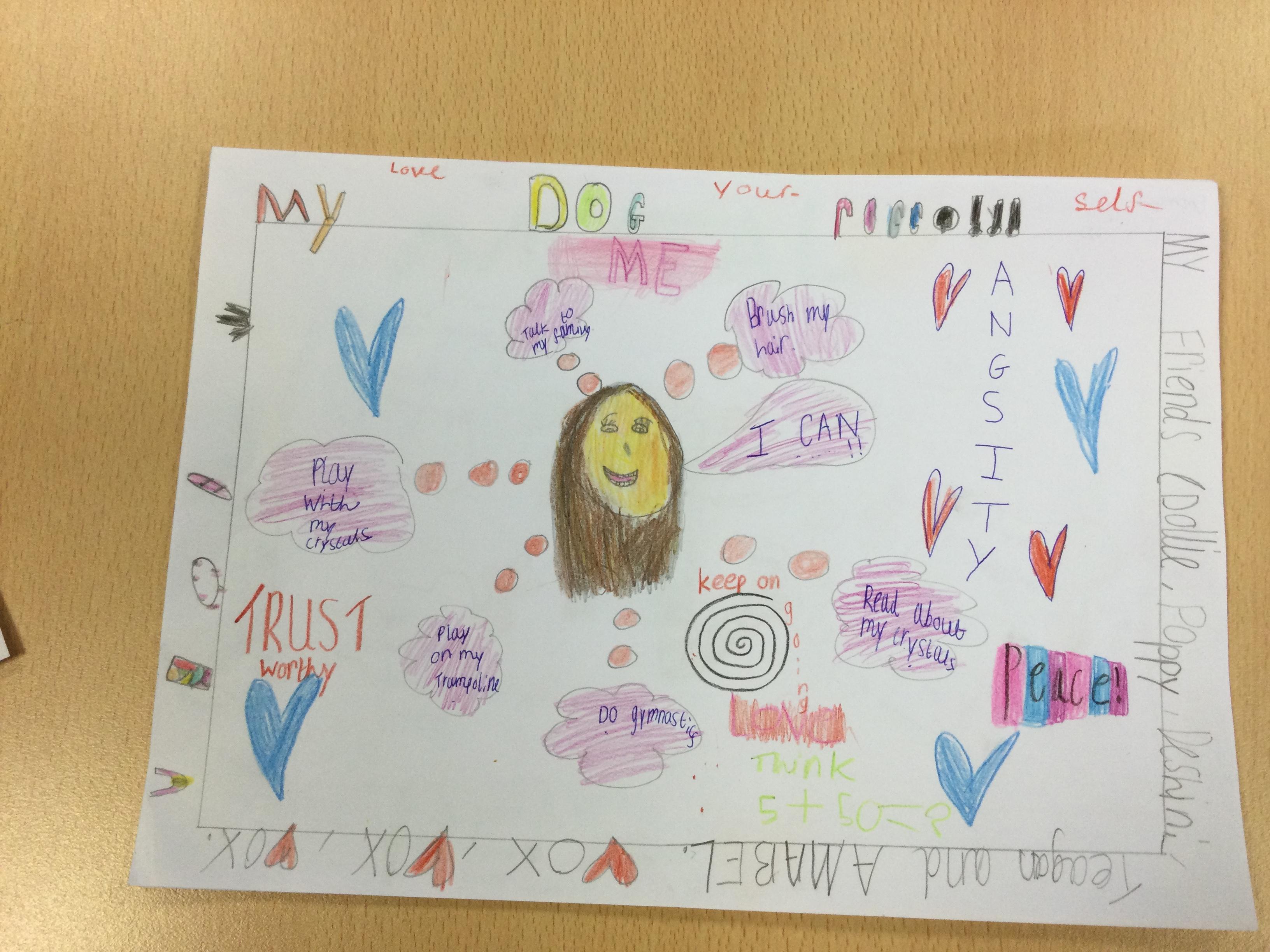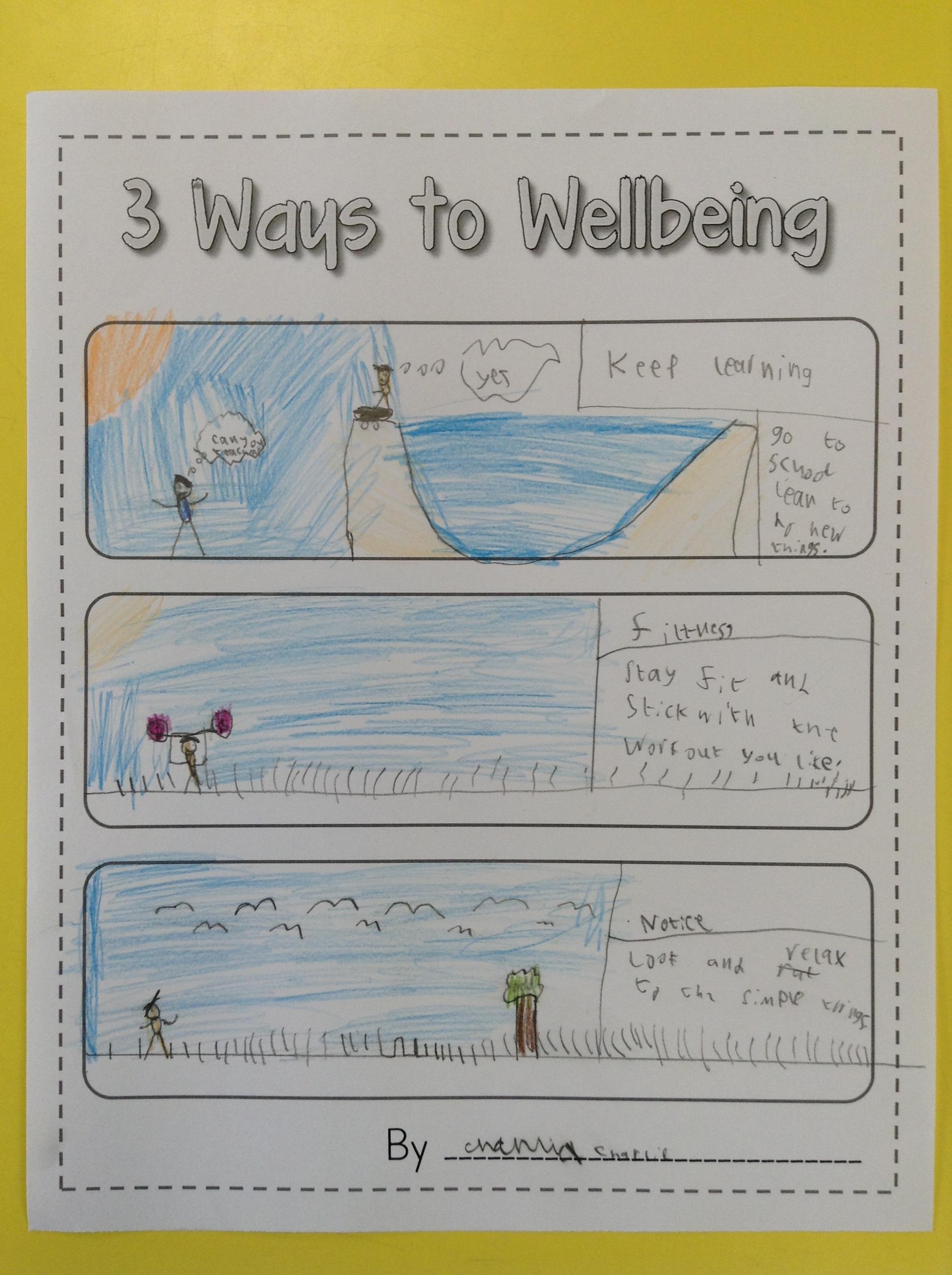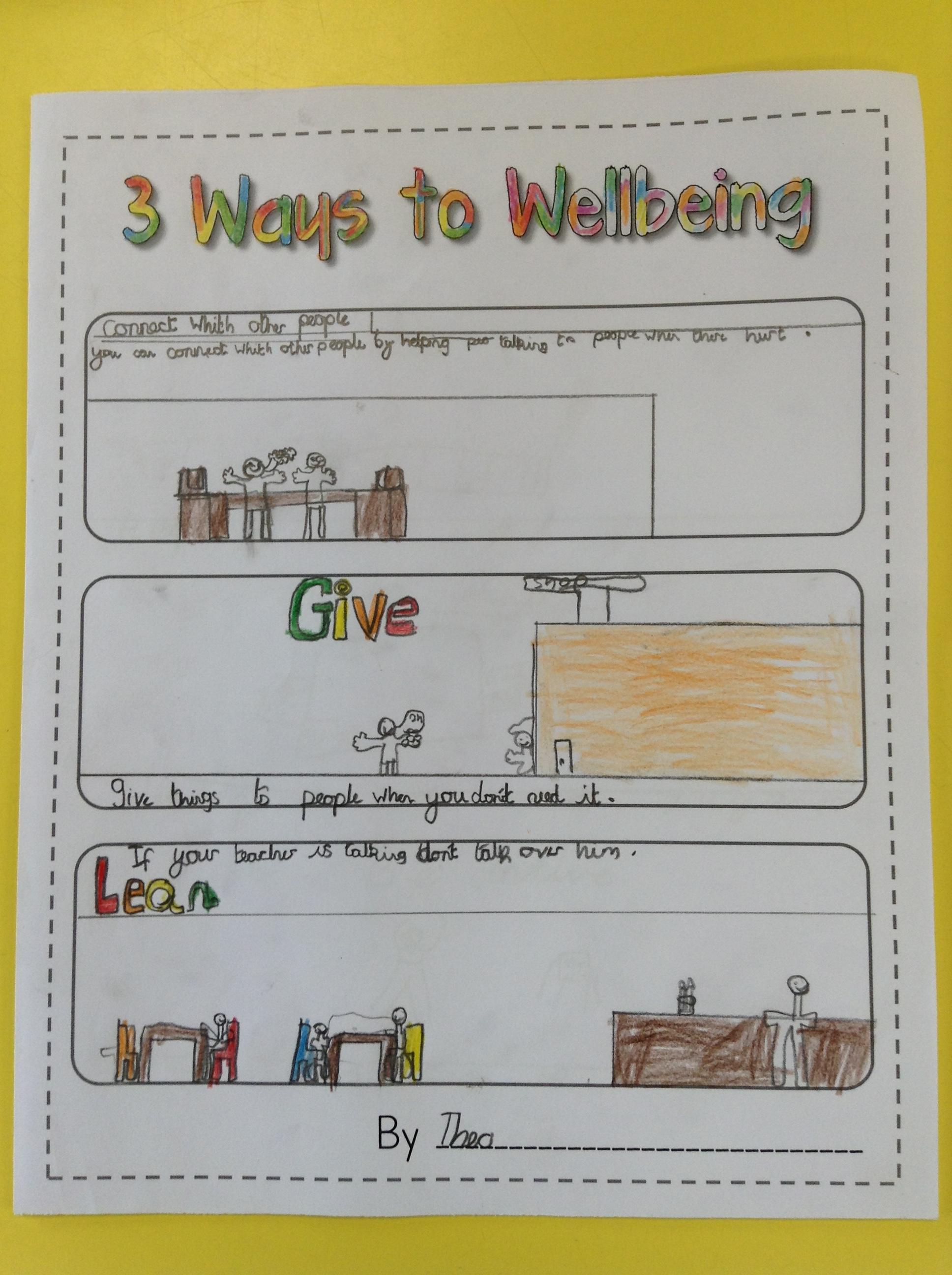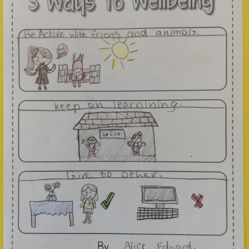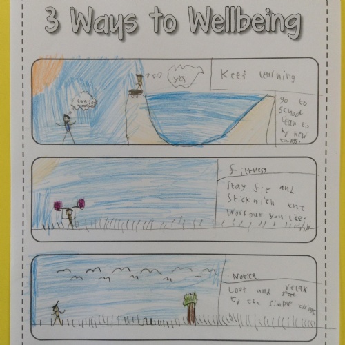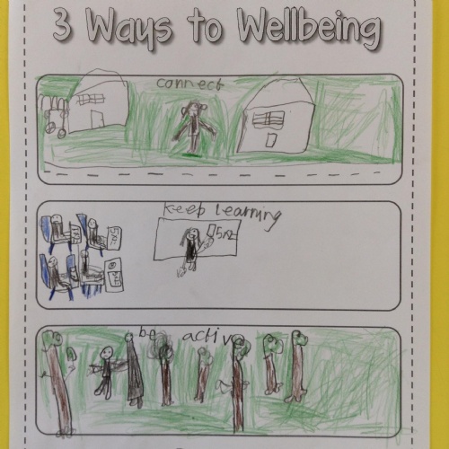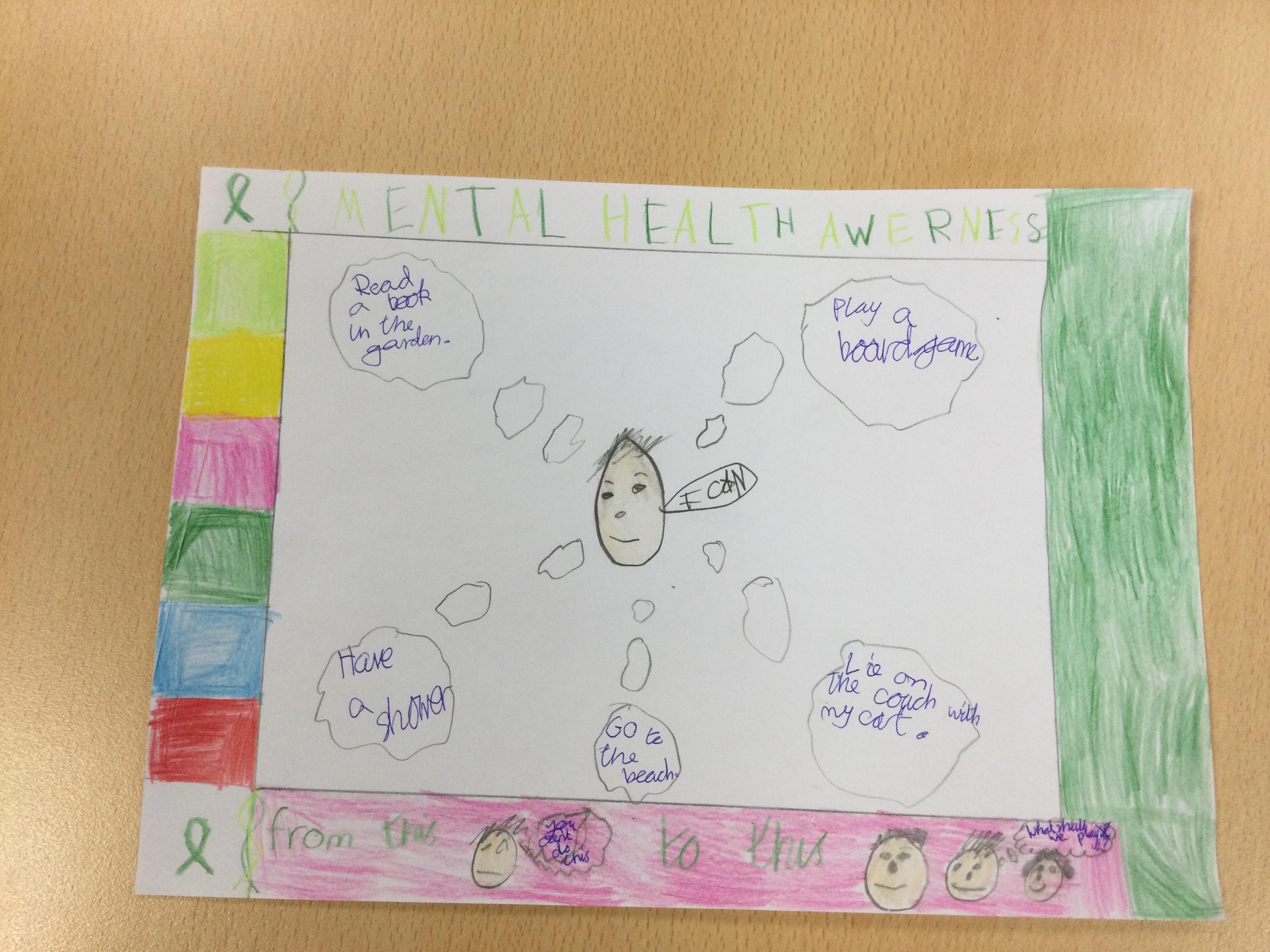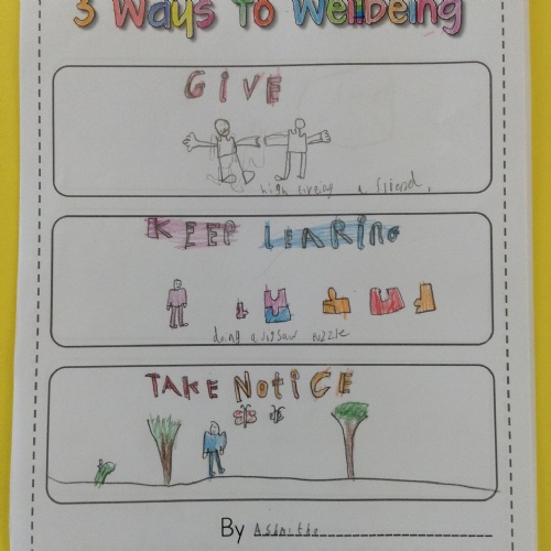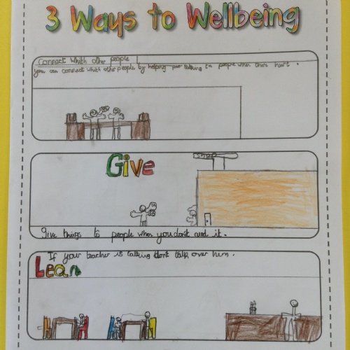 We looked at '5 Ways To Wellbeing' and then made posters showing the 3 we thought were most important.