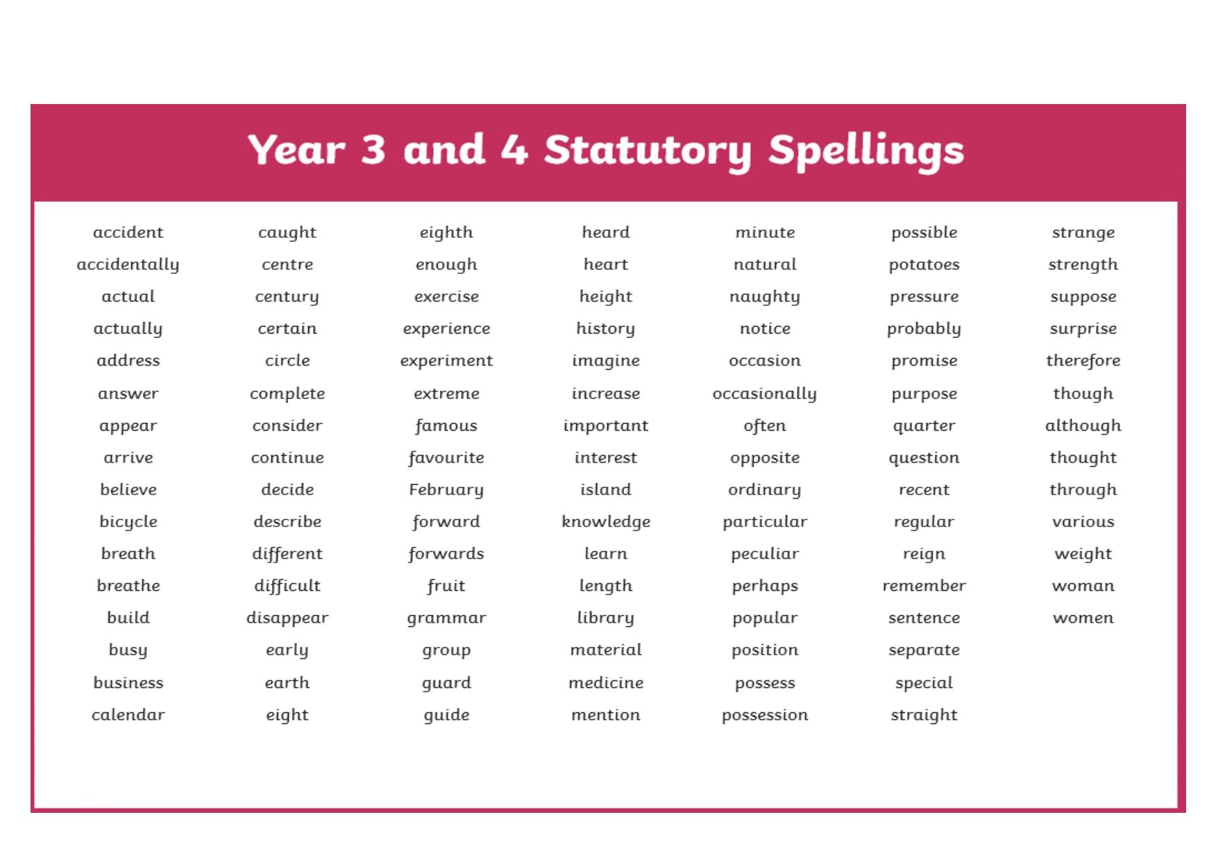 These are sent home every Friday and the test will be the following Friday, so the children will have a week to practise.